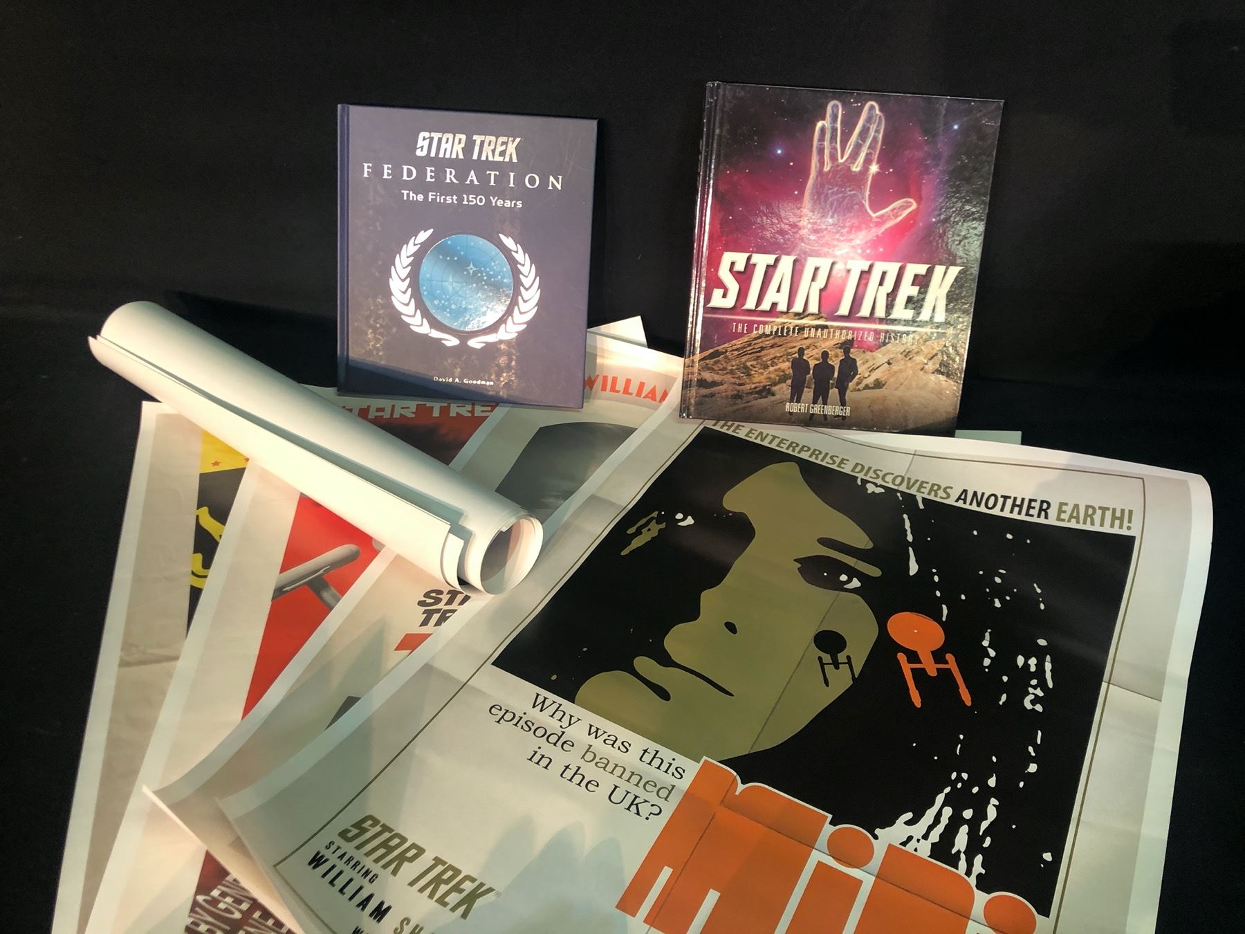STAR TREK COLLECTABLES INC. "FEDERATION, THE FIRST 150 YEARS" COLLECTOR'S BOOK, "THE COMPLETE UNAUTHORIZED HISTORY" BOOK, AND STAR TREK THE ORIGINAL SERIES POSTERS, SETS 6 & 8