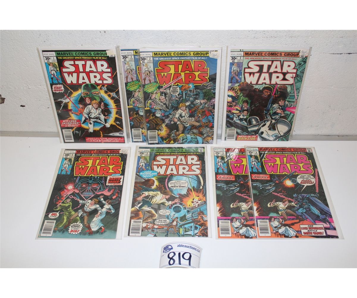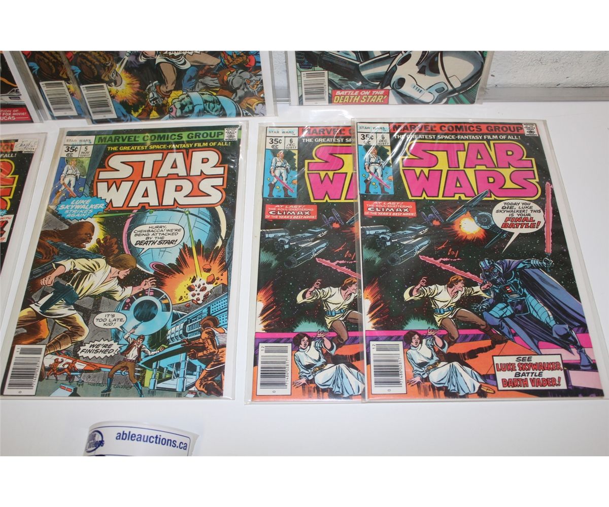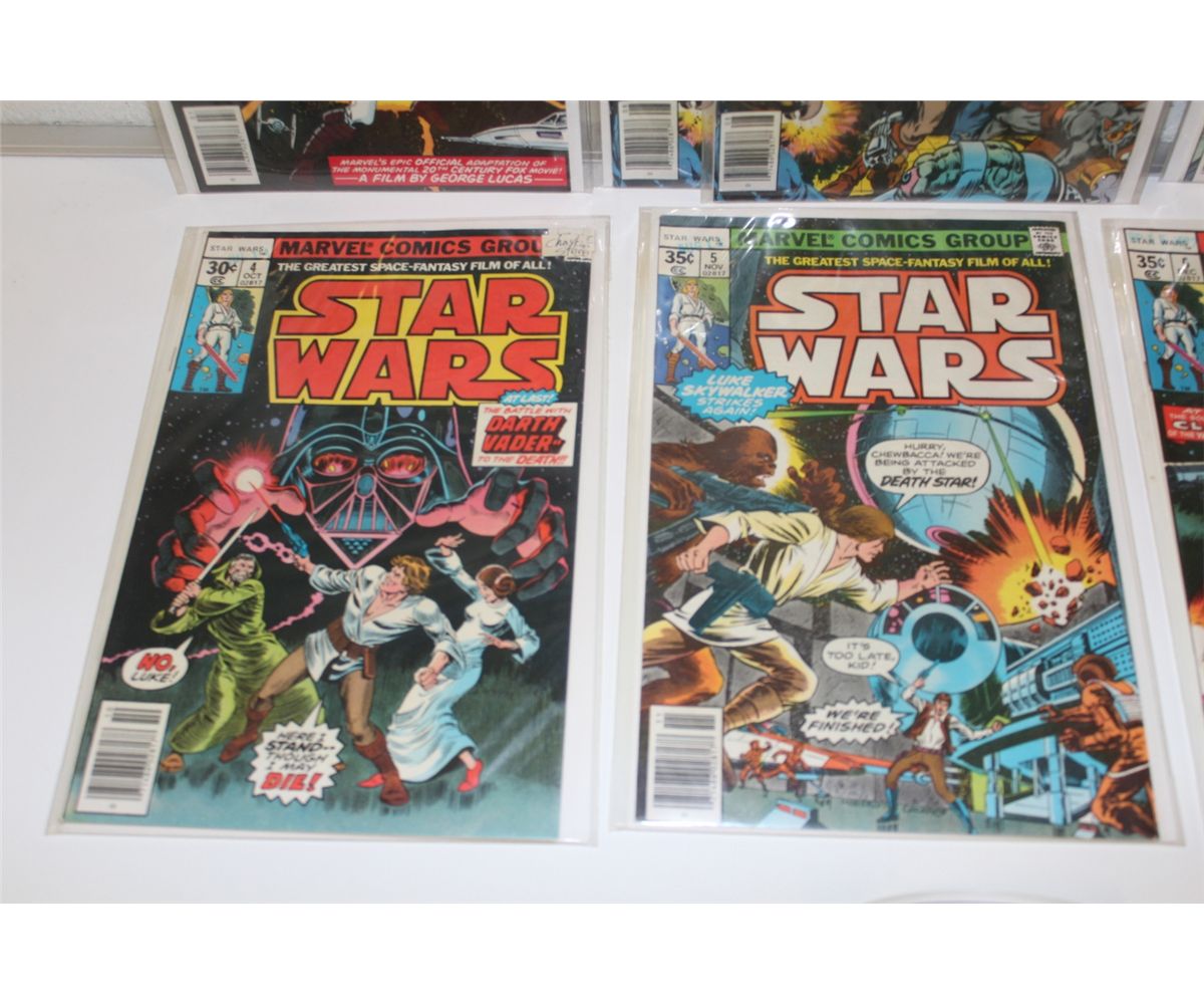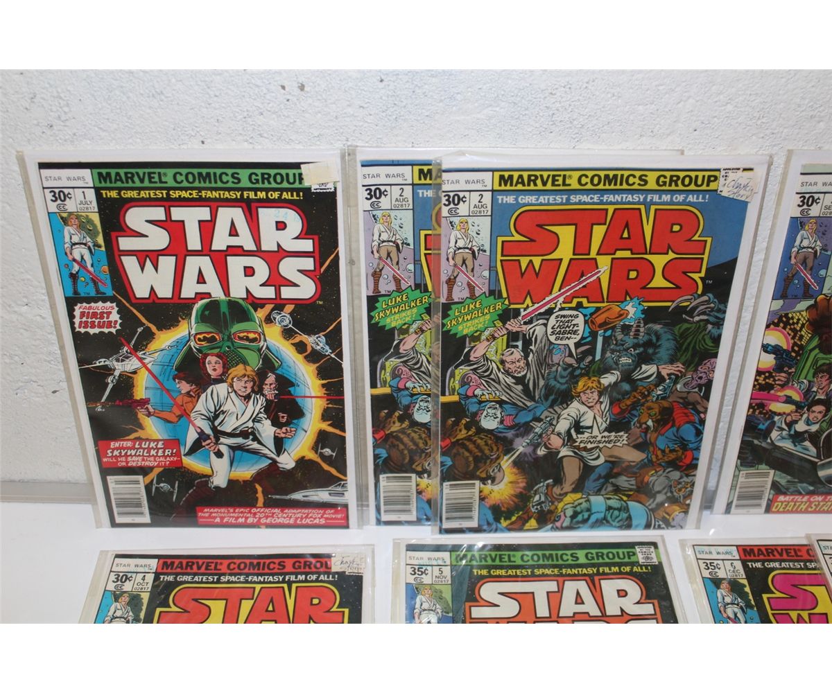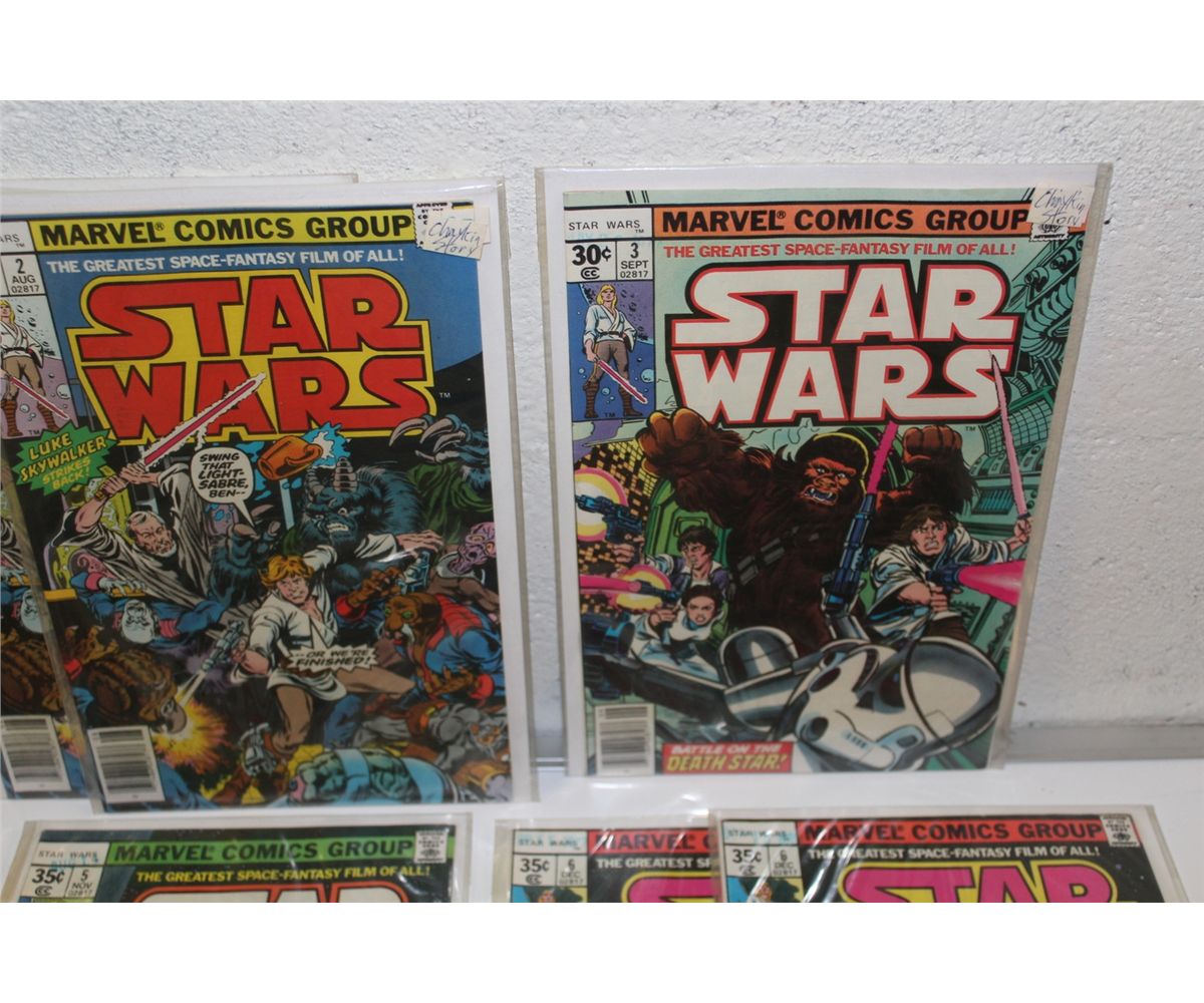 STAR WARS # 1-6 (1977) INCLUDES #2 & 6 (X 2 COPIES EACH) 1ST 6 ISSUES ADAPT THE MOVIE. 8 BOOKS TOTAL, HIGH GRADE AVERAGE, GLOSSY,TIGHT EXCELLENT COPIES!