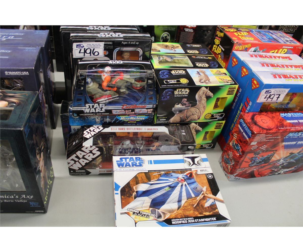 STAR WARS LOT INCLUDING 2- LUKE SKYWALKER ACTION , 6 KENNER TOYS NEW IN BOX, PLUS MORE!