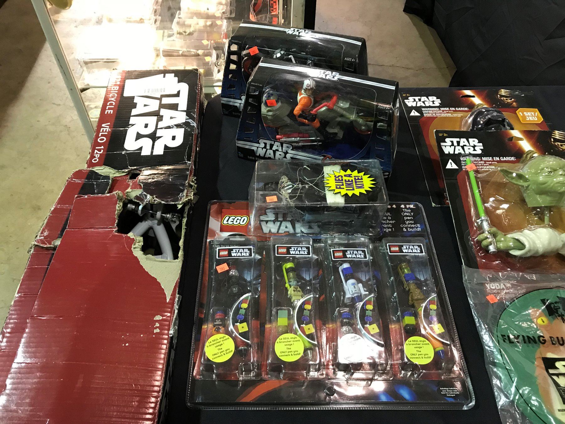 STAR WARS LUKE SKYWALKER REBEL CHOPPER, DARTH VADER IMPERIAL CHOPPER, PARACHUTE DARTH VADER & 4 PACK LEGO PENS