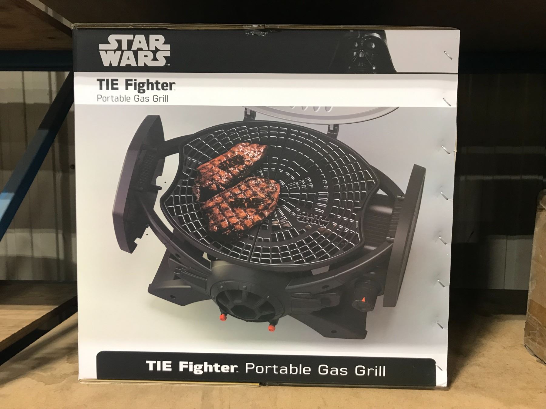 STAR WARS TIE FIGHTER PORTABLE GAS GRILL 220 SQ INCH COOKING AREA, THERMOMETER, HOSE AND REGULATOR INCLUDED, ELECTRIC IGNITION, IMPERIAL DESIGN CAST IRON COOKING GRILLS
