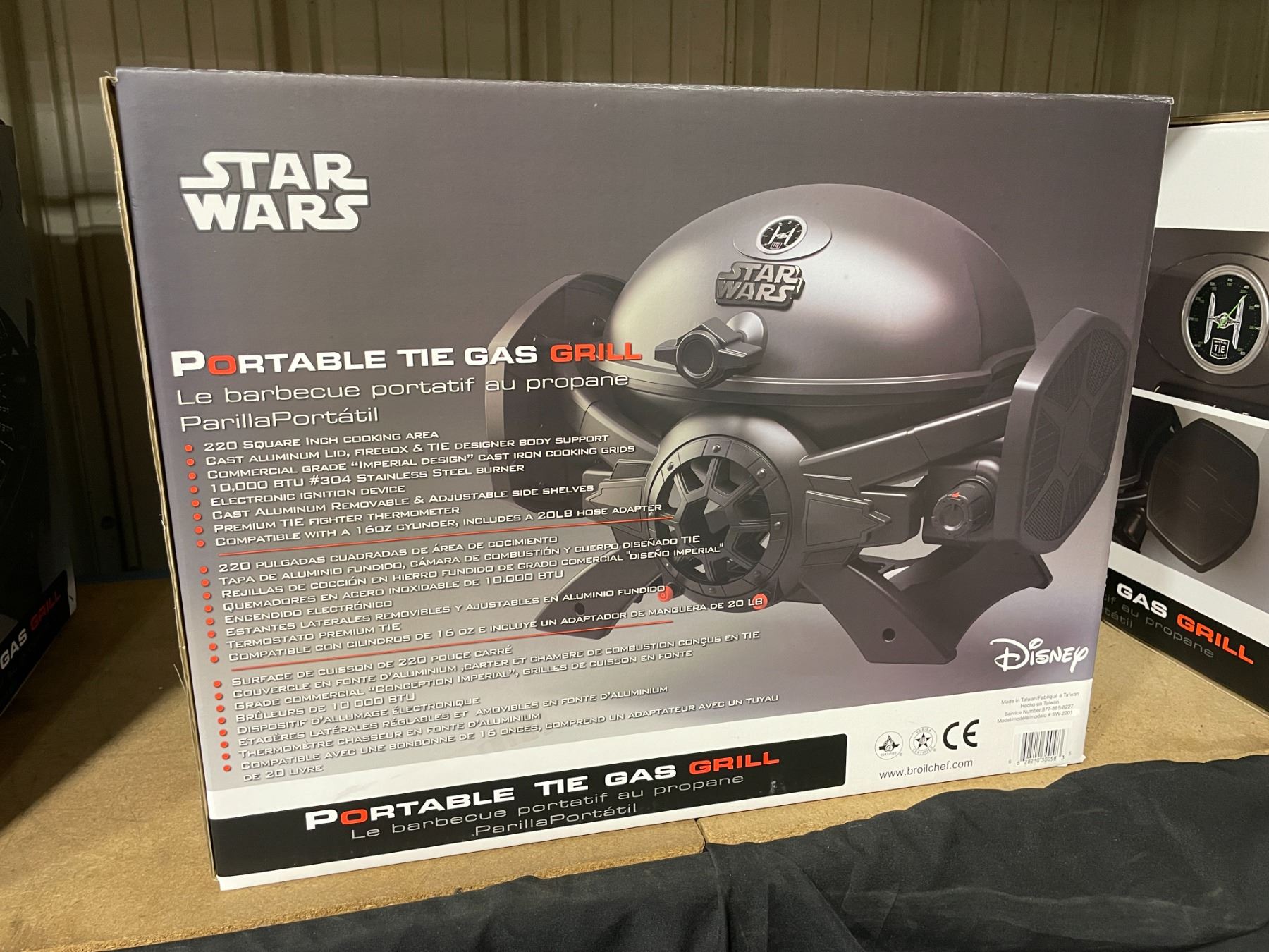STAR WARS TIE FIGHTER PORTABLE GAS GRILL 220 SQ INCH COOKING AREA, THERMOMETER, HOSE AND