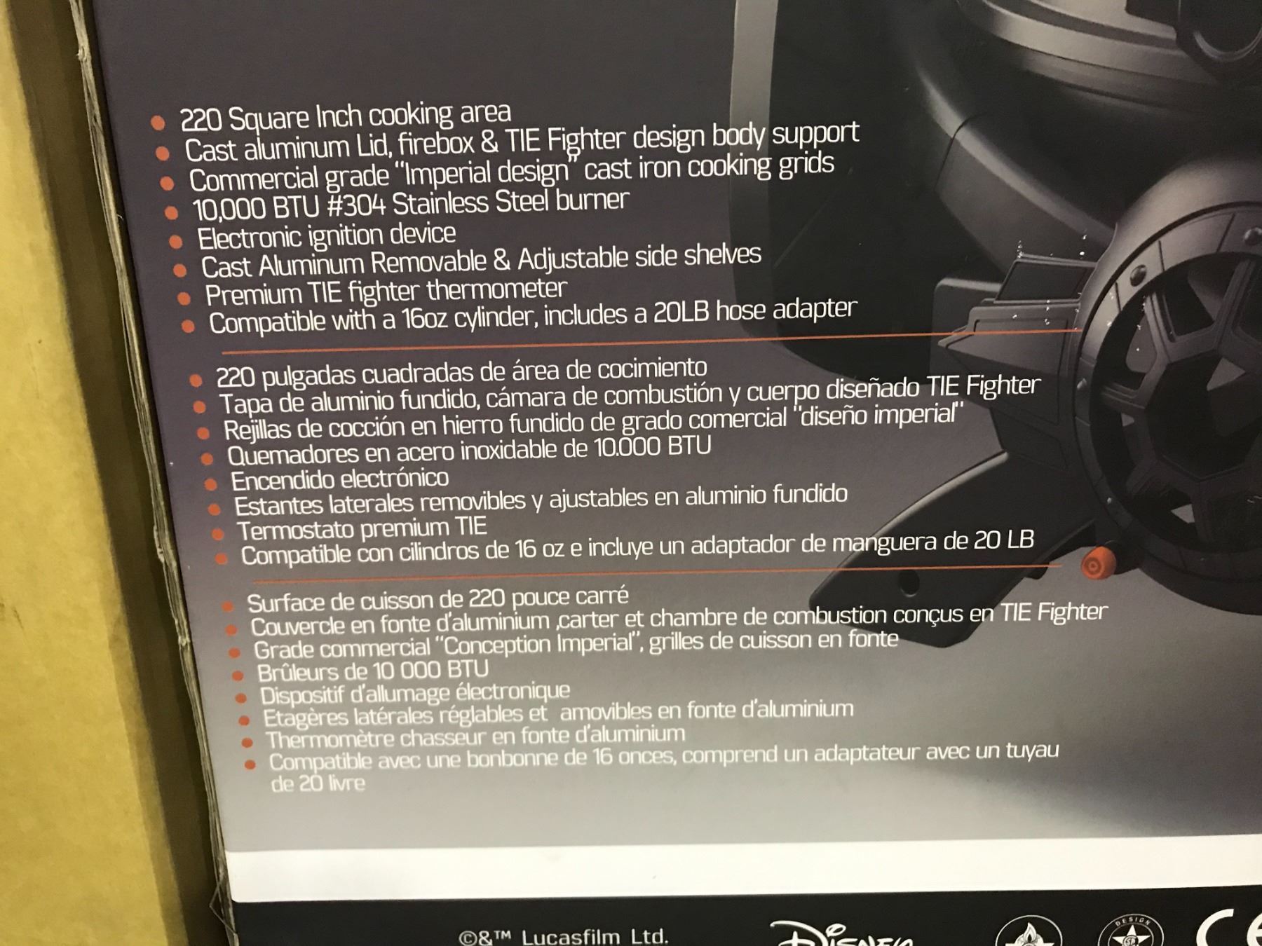 STAR WARS TIE FIGHTER PORTABLE GAS GRILL CAST ALUMINUM LID