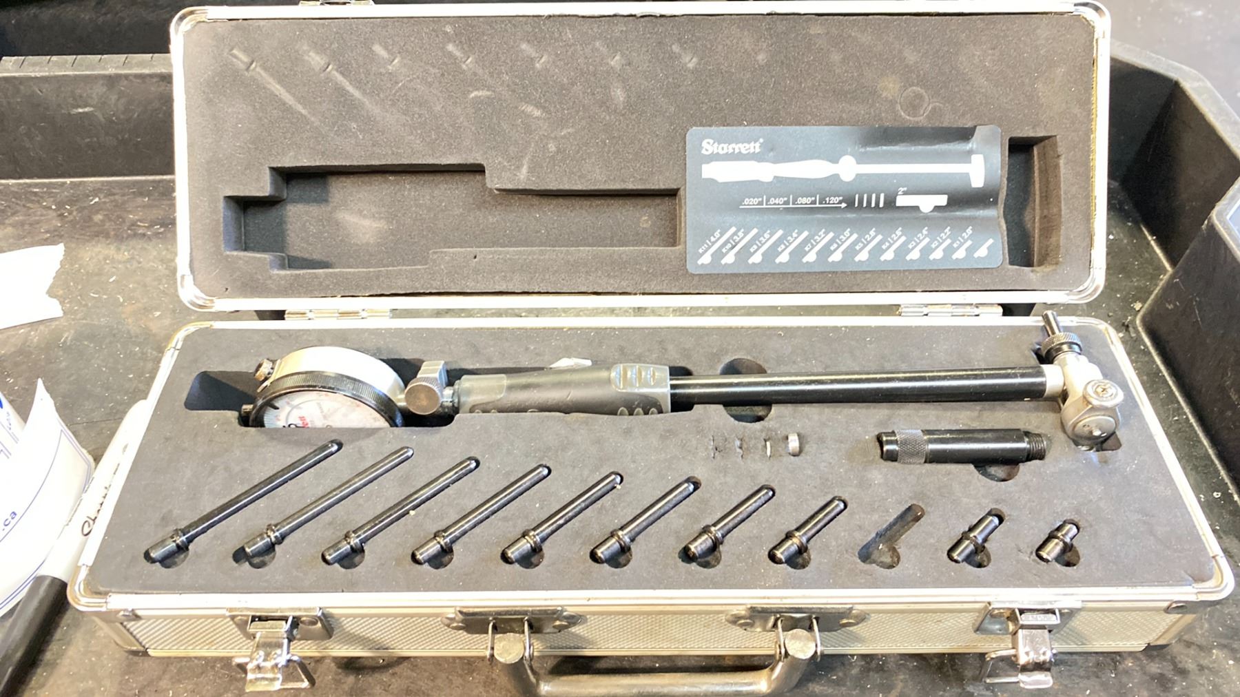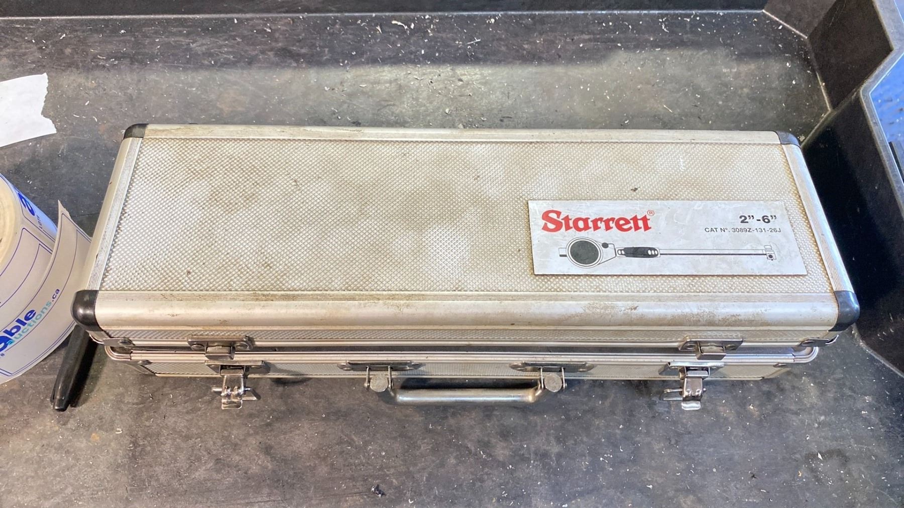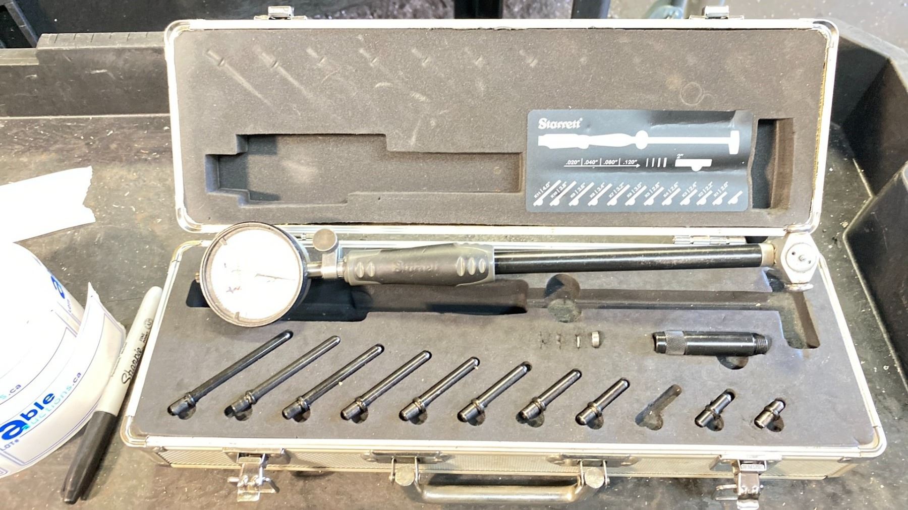 STARRETT 2"-6" MACHINIST DIAL GAUGE WITH VARIOUS BITS AND CASE