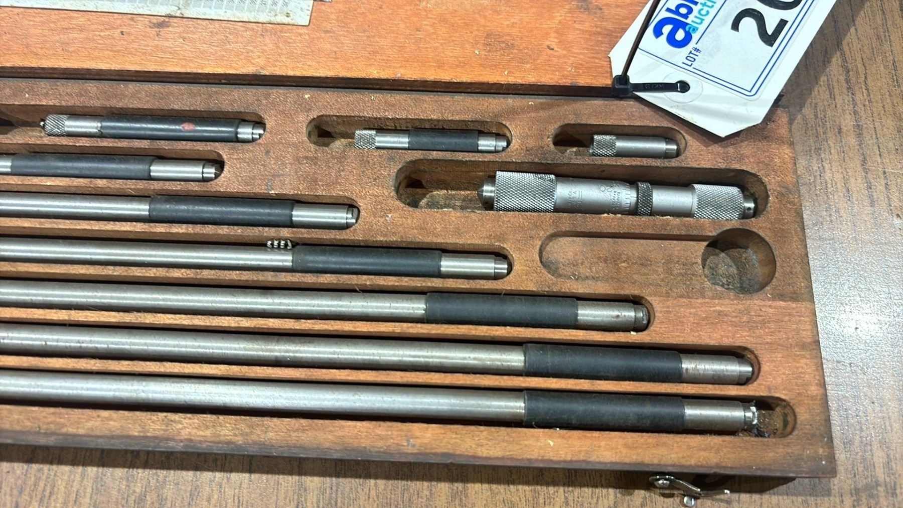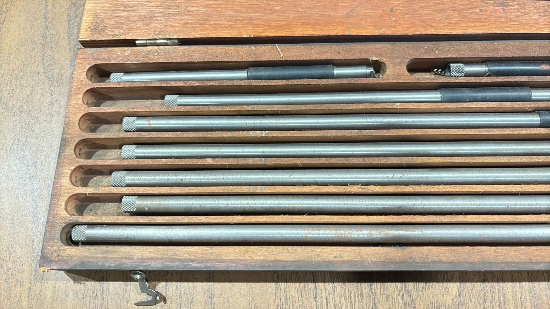 STARRETT INSIDE MICROMETER NO.823E RANGE 4" TO 48" ONE HEAD WITH 1" MOVEMENT WITH WOODEN CASE *ONE PIECE MISSING*