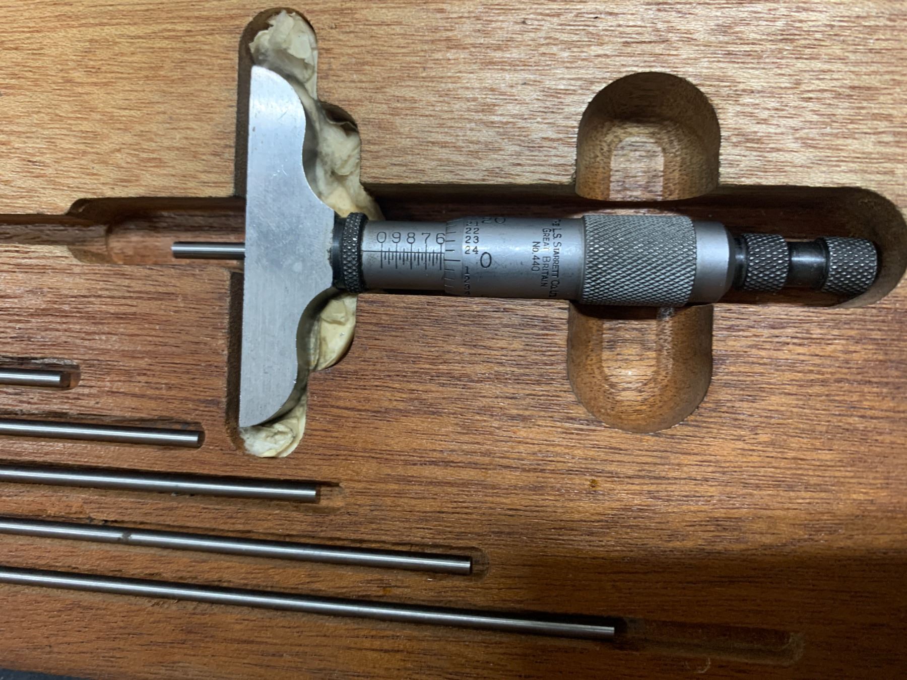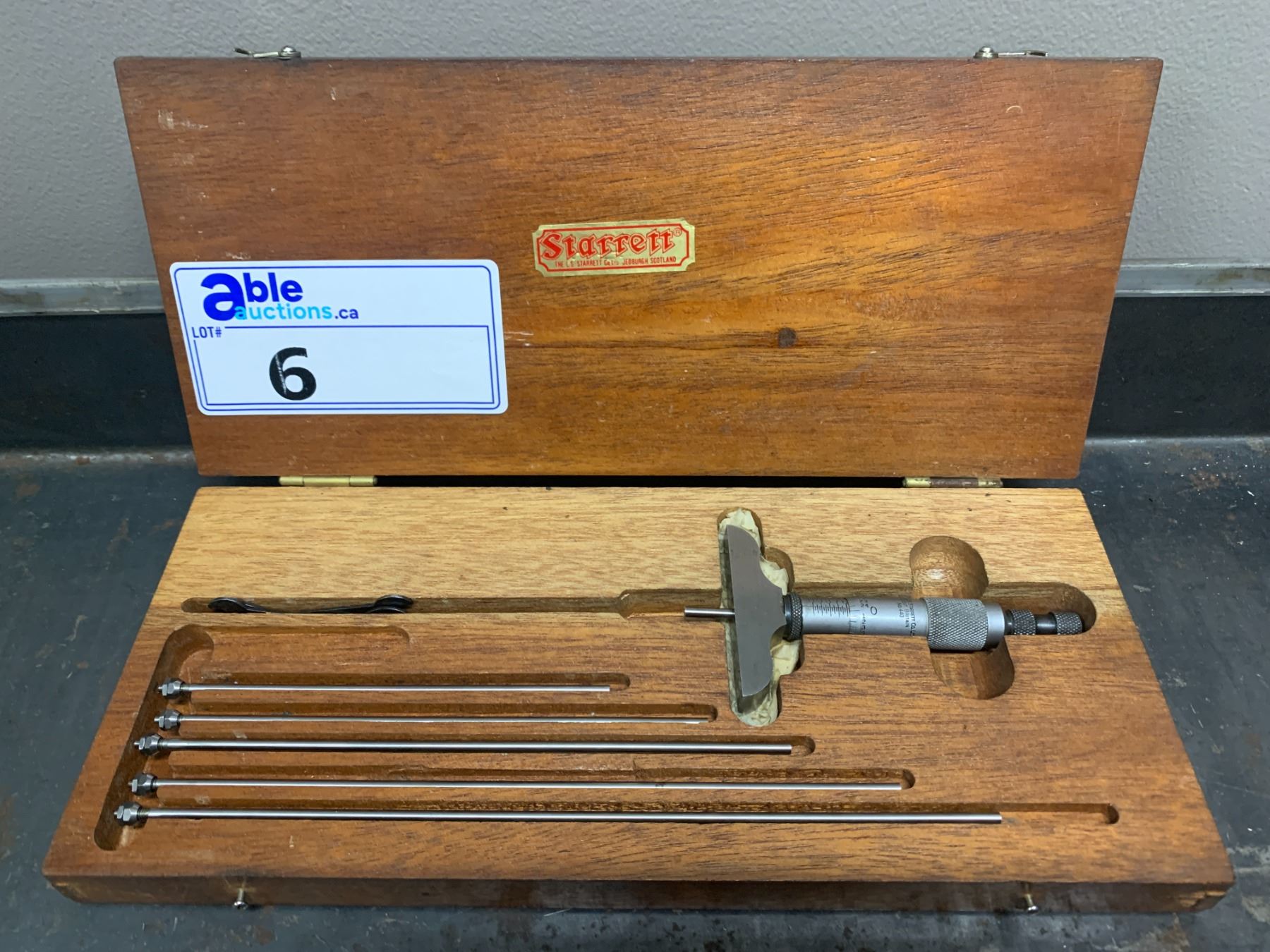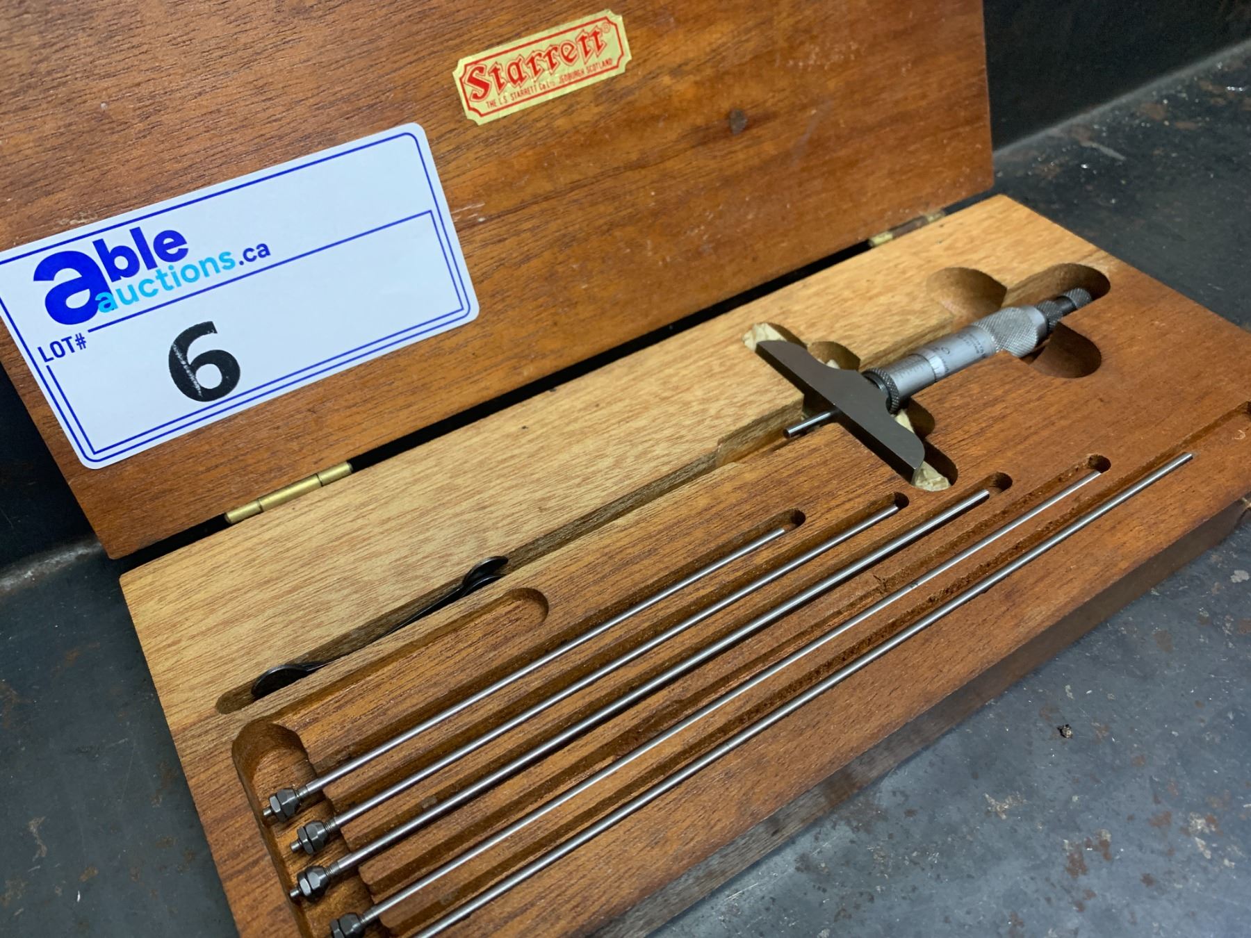 STARRETT MACHINIST DEPTH MICROMETER WITH WOODEN BOX