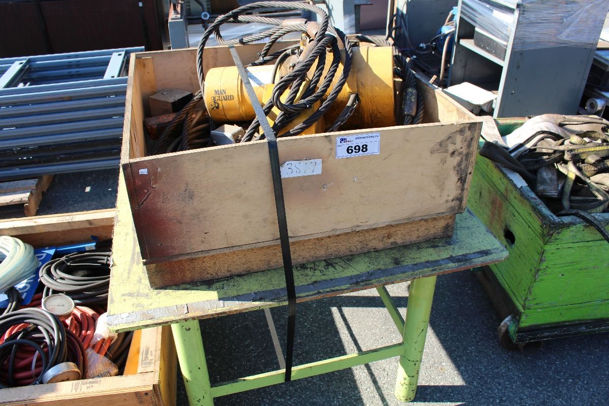 STEEL TABLE AND A HEAVY DUTY ELECTRIC ONE TON WINCH