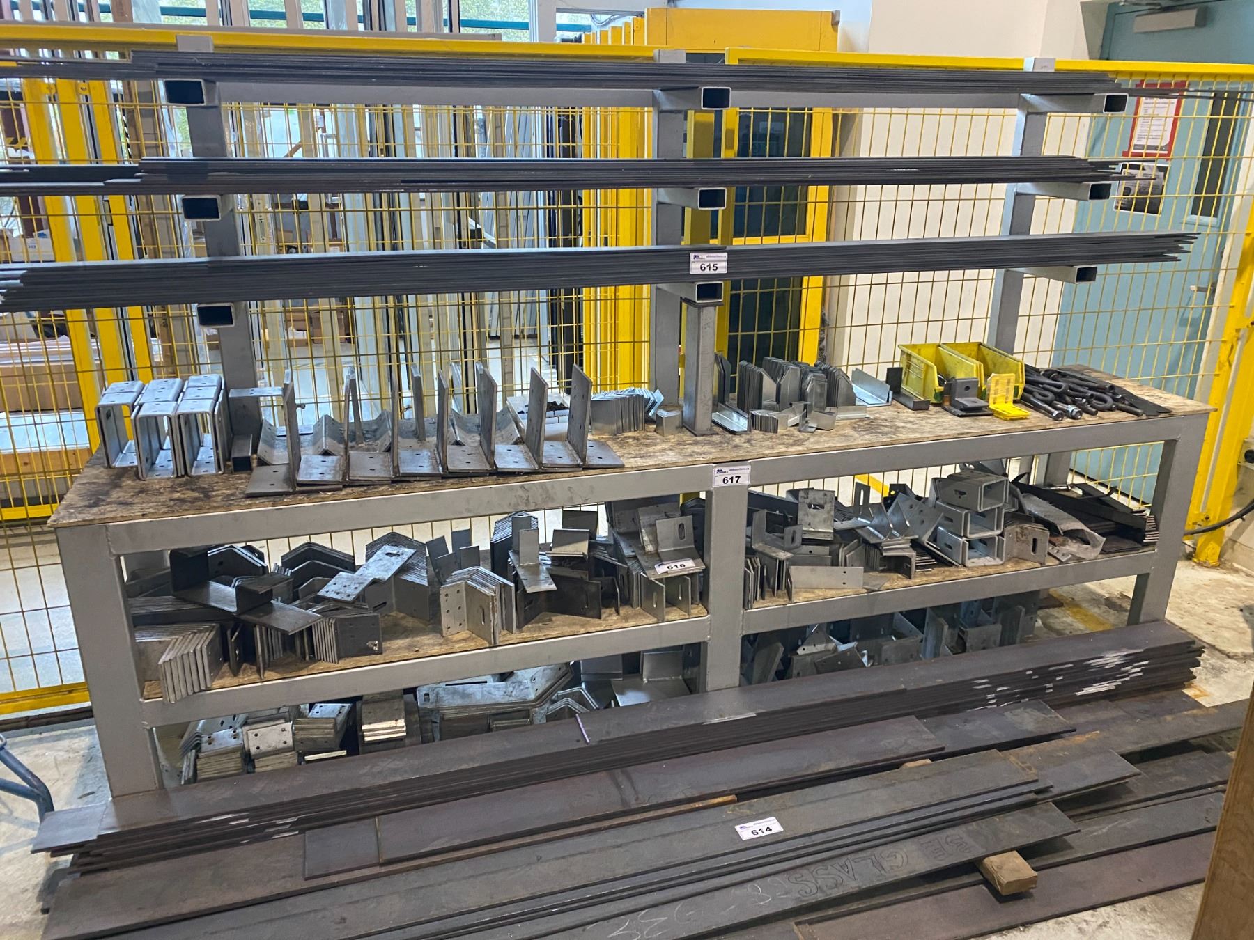 STEEL WORK BENCH, 10'W X 6'T X 22"D, 3 TIER STOCK RACK ON TOP