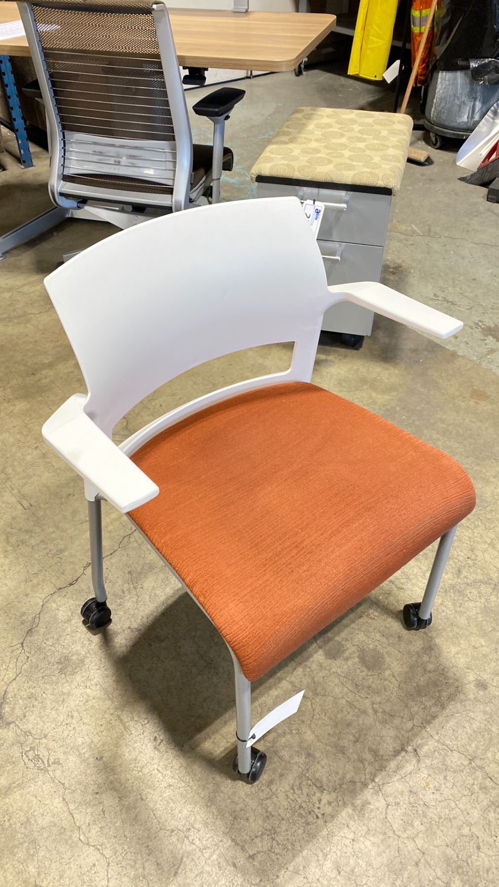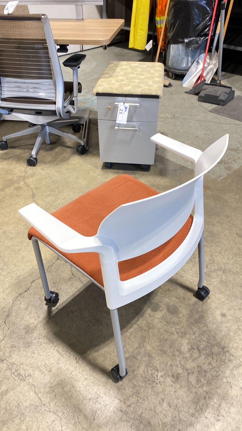STEELCASE 490412C WHITE / GREY / RED PADDED MOBILE CLIENT CHAIR