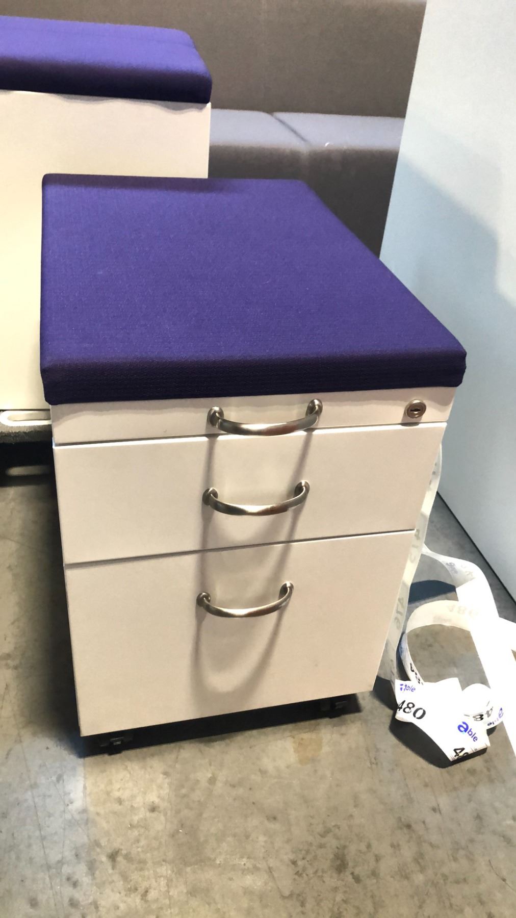STEELCASE BEIGE 2 DRAWER PURPLE CUSHION TOP MOBILE PEDESTAL
