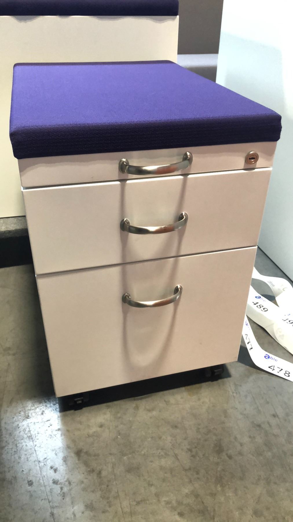 STEELCASE BEIGE 2 DRAWER PURPLE CUSHION TOP MOBILE PEDESTAL