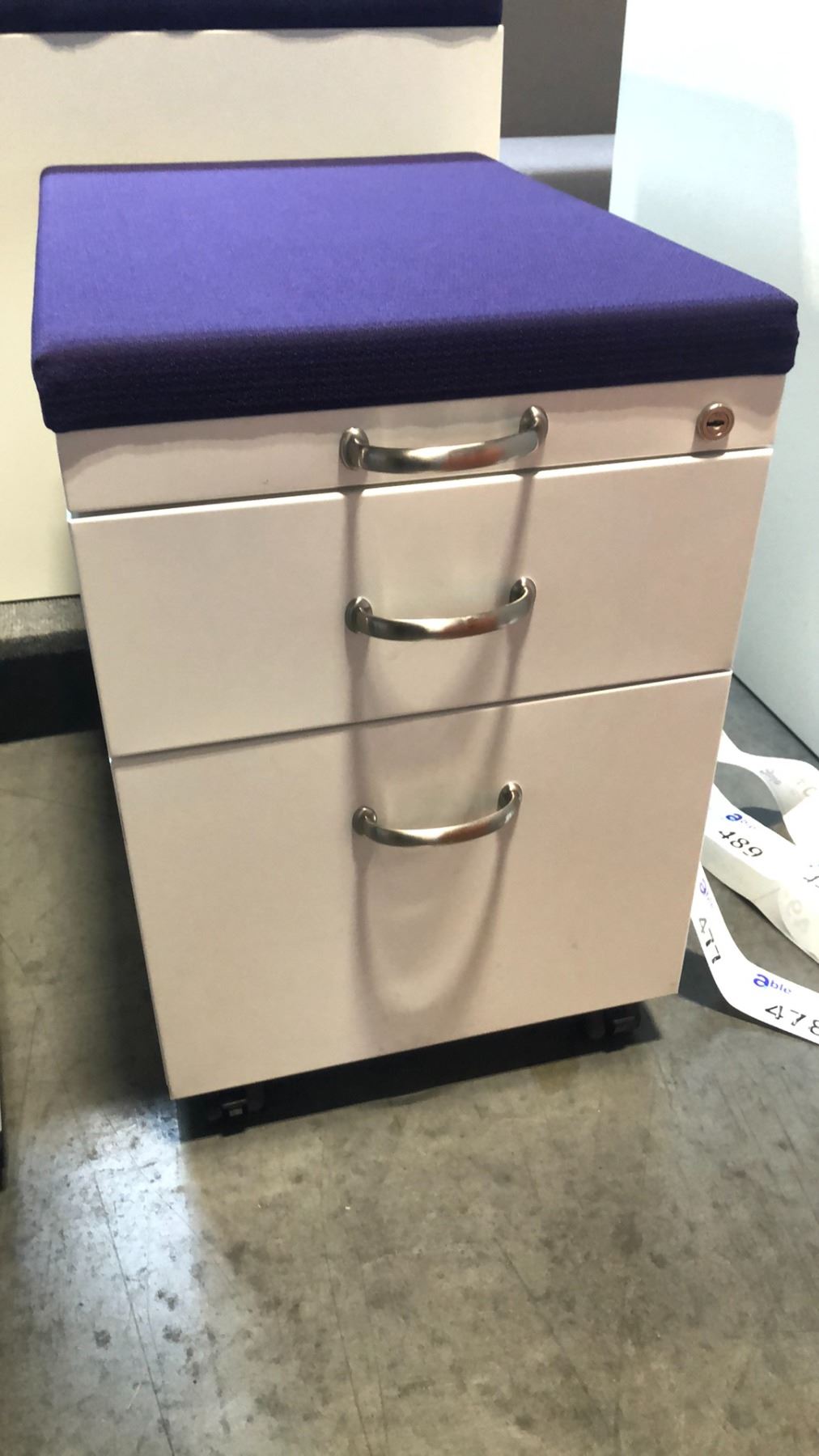 STEELCASE BEIGE 2 DRAWER PURPLE CUSHION TOP MOBILE PEDESTAL