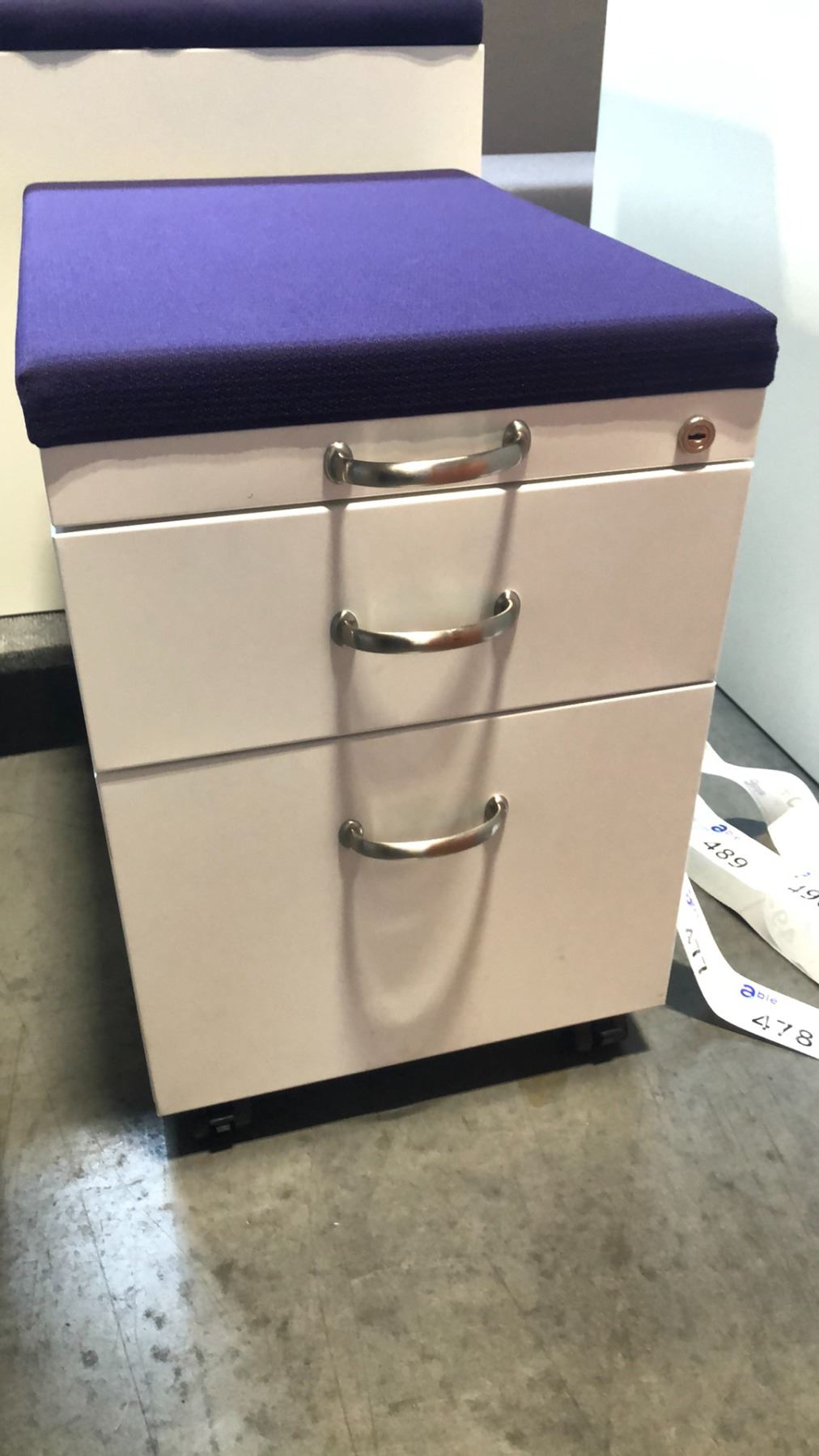 STEELCASE BEIGE 2 DRAWER PURPLE CUSHION TOP MOBILE PEDESTAL