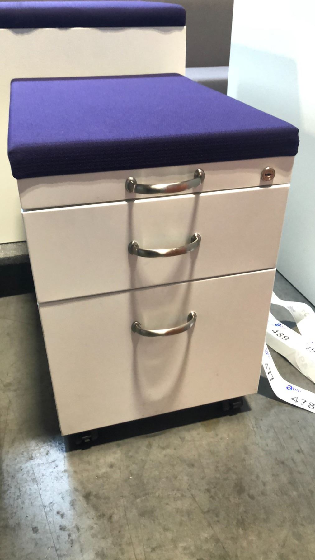 STEELCASE BEIGE 2 DRAWER PURPLE CUSHION TOP MOBILE PEDESTAL