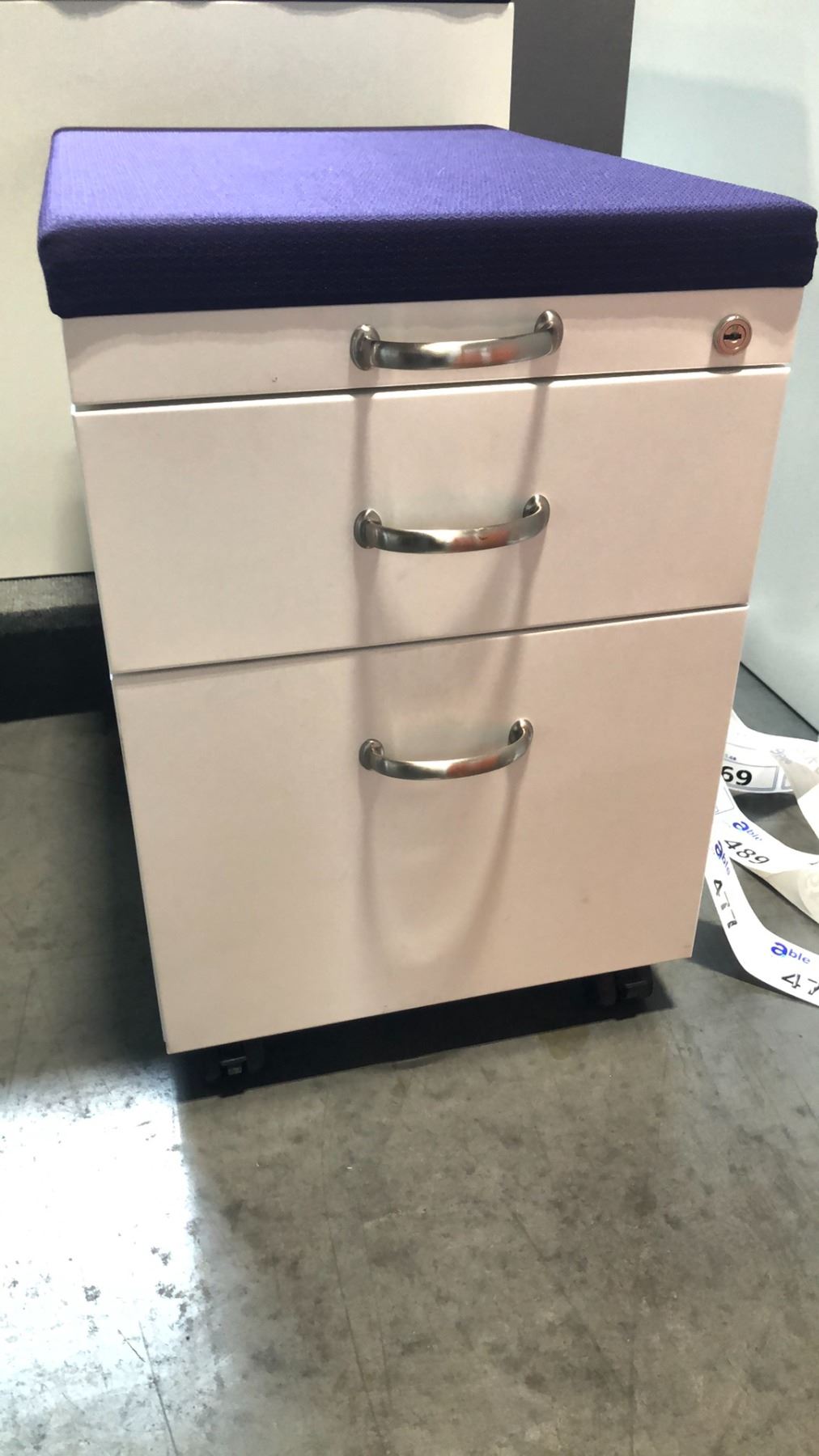 STEELCASE BEIGE 2 DRAWER PURPLE CUSHION TOP MOBILE PEDESTAL