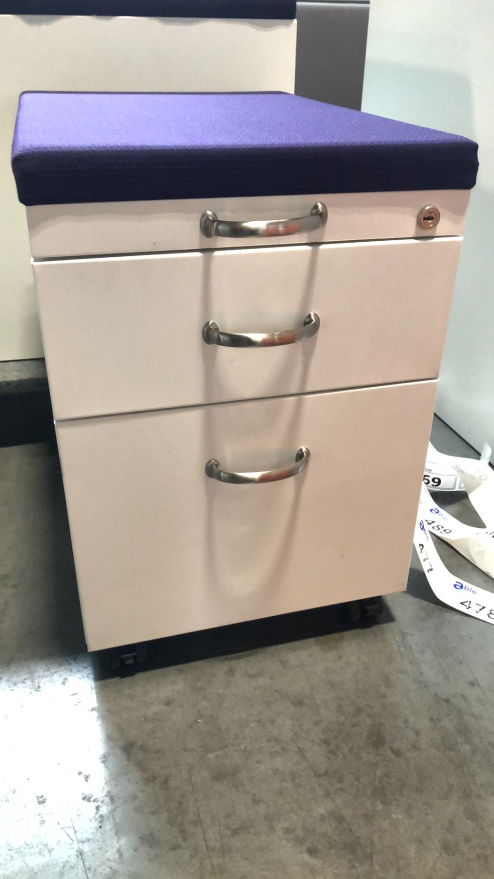 STEELCASE BEIGE 2 DRAWER PURPLE CUSHION TOP MOBILE PEDESTAL