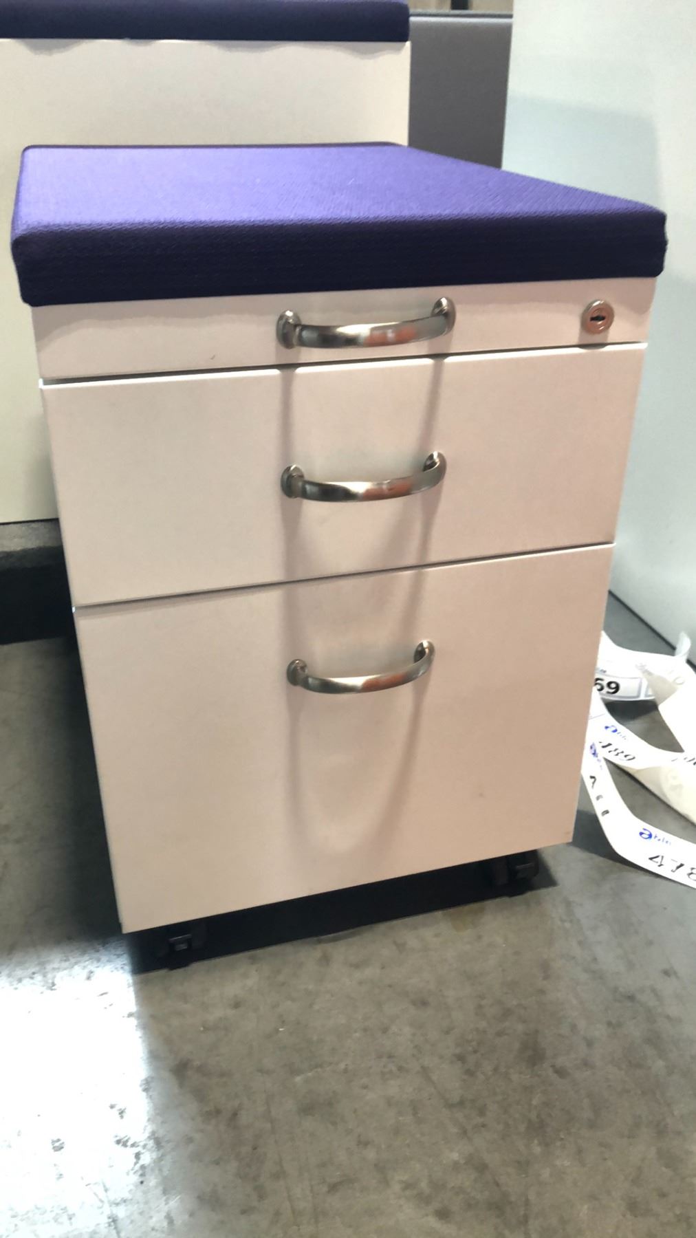 STEELCASE BEIGE 2 DRAWER PURPLE CUSHION TOP MOBILE PEDESTAL
