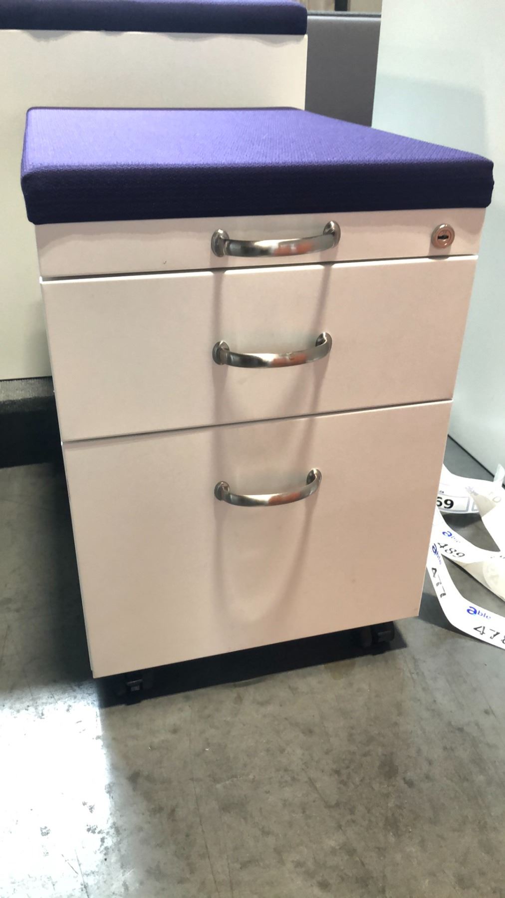 STEELCASE BEIGE 2 DRAWER PURPLE CUSHION TOP MOBILE PEDESTAL