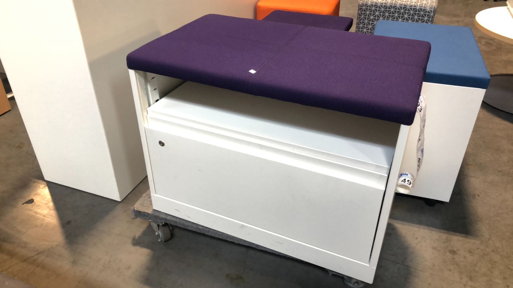 STEELCASE BEIGE SINGLE DRAWER PURPLE CUSHION TOP LATERAL FILE CABINET