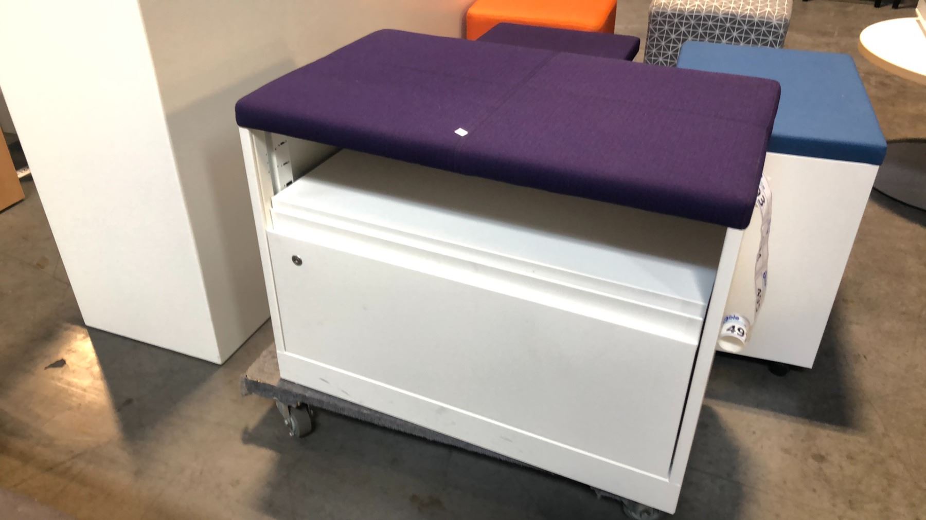 STEELCASE BEIGE SINGLE DRAWER PURPLE CUSHION TOP LATERAL FILE CABINET