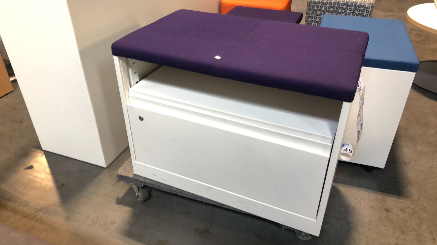 STEELCASE BEIGE SINGLE DRAWER PURPLE CUSHION TOP LATERAL FILE CABINET