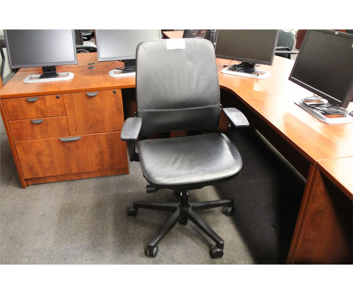 STEELCASE CREW BLACK LEATHER TASK CHAIR