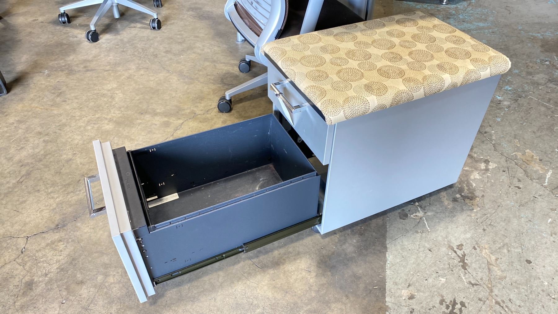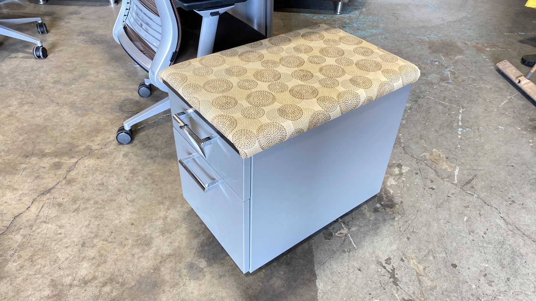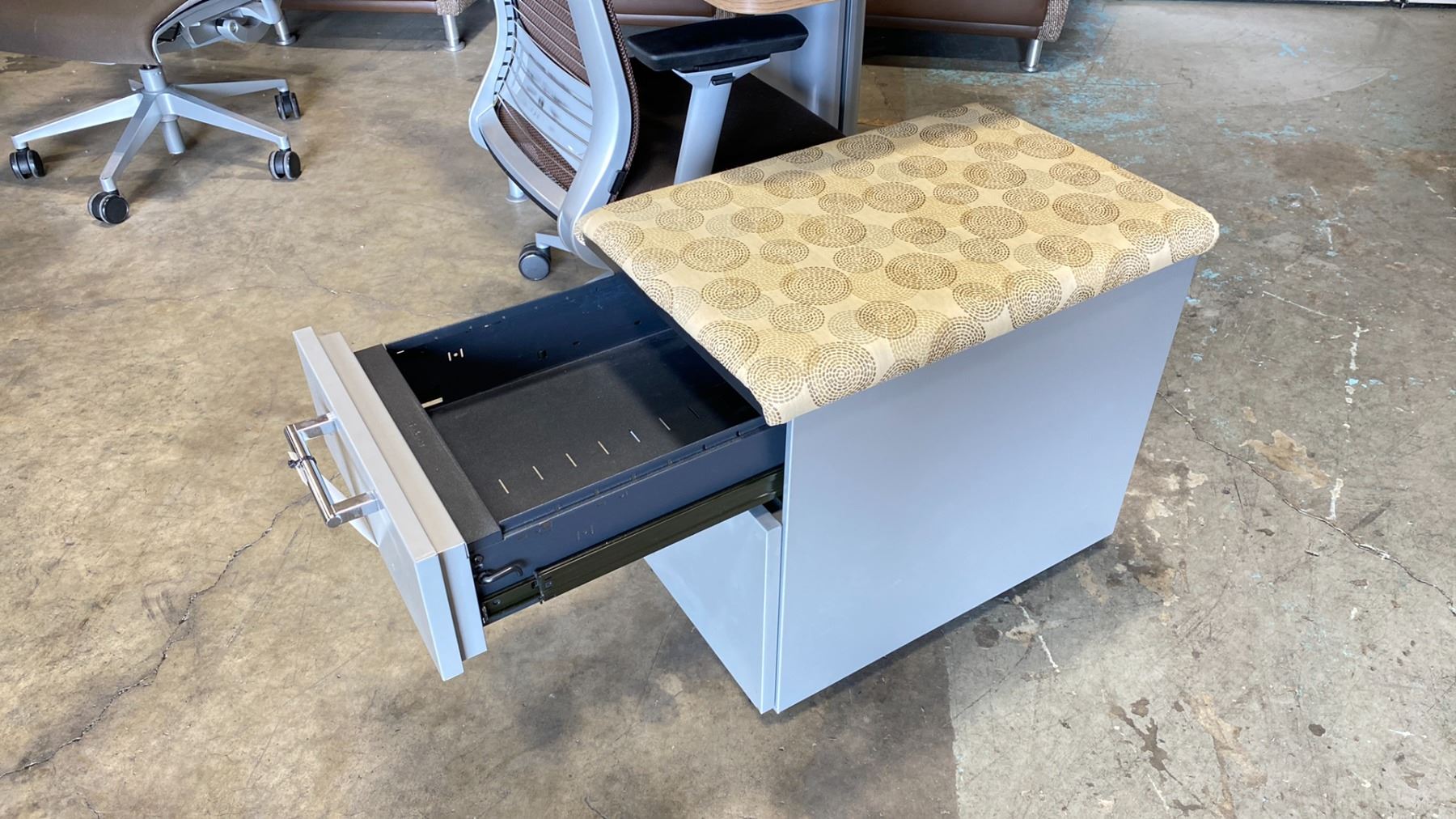 STEELCASE GREY METAL 2 DRAWER PADDED TOP MOBILE SEATING PEDESTAL