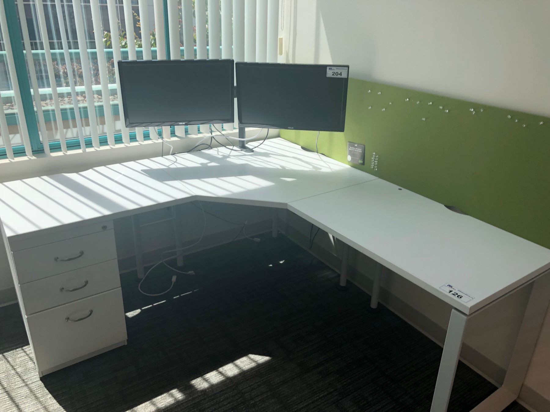 STEELCASE TURNSTONE FREE STANDING WHITE / GREEN EXECUTIVE CORNER DESK