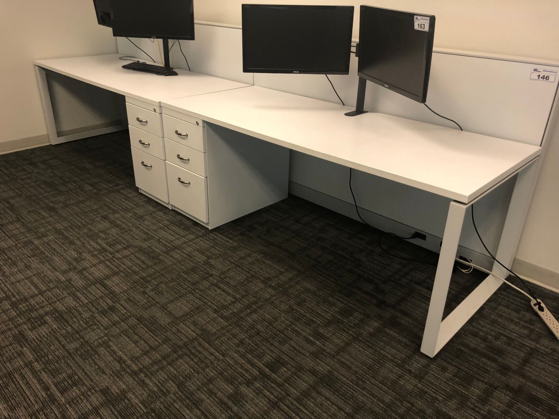 STEELCASE TURNSTONE WHITE WITH GLASS PANEL 2 PERSON OFFICE CUBICLE WITH FILE PEDESTALS
