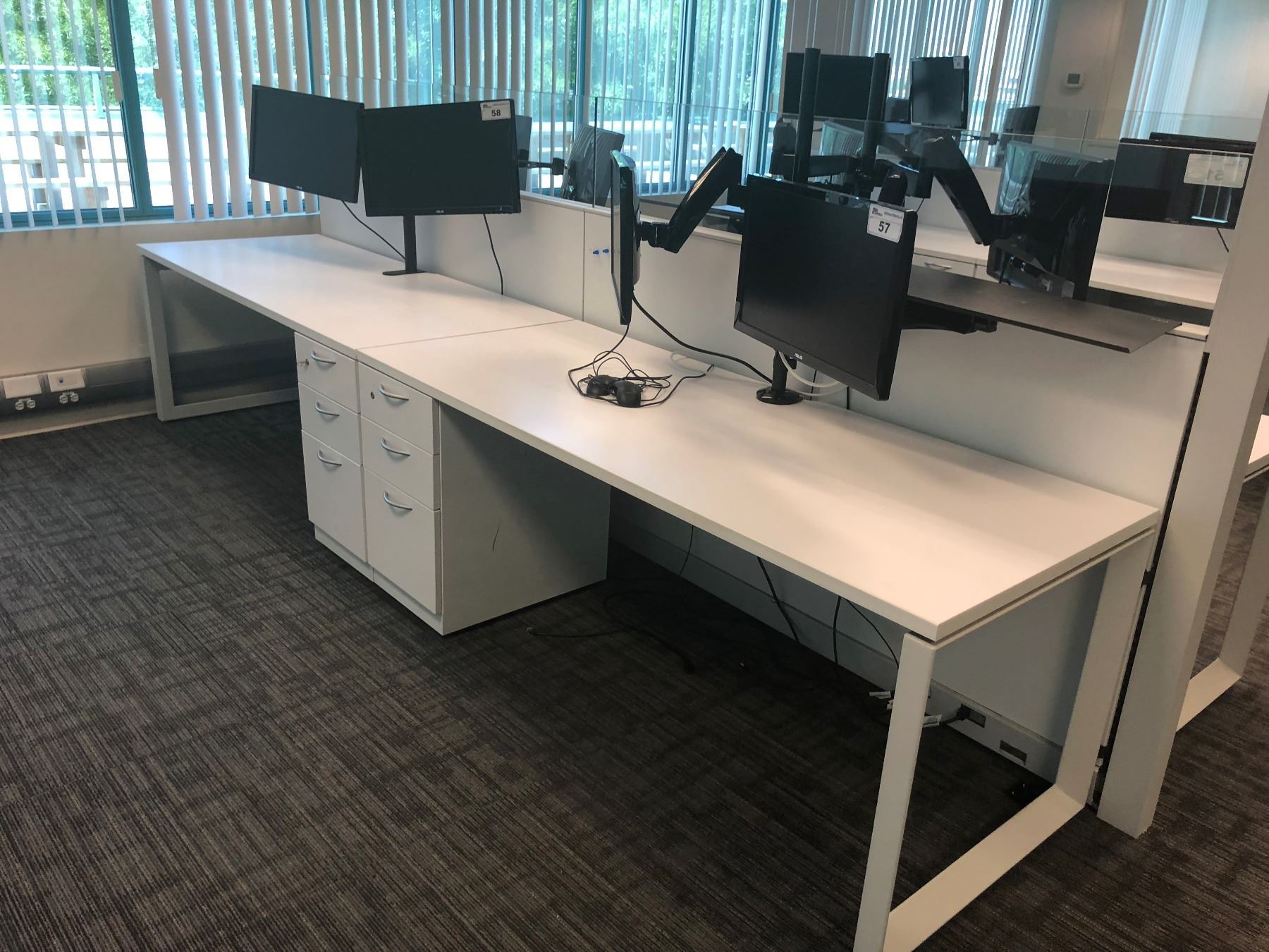 STEELCASE TURNSTONE WHITE WITH GLASS PANEL 4 PERSON OFFICE CUBICLE WITH FILE PEDESTALS