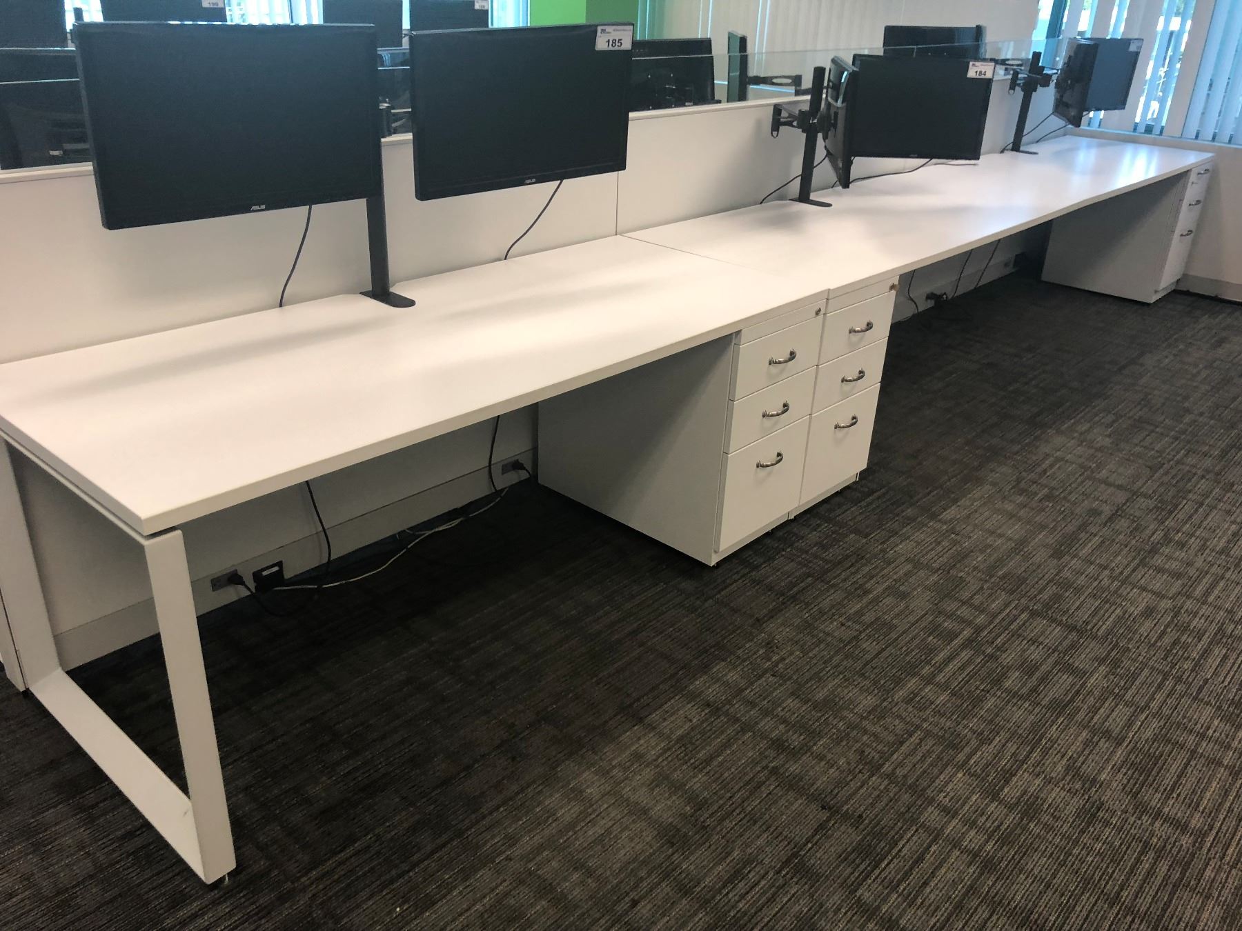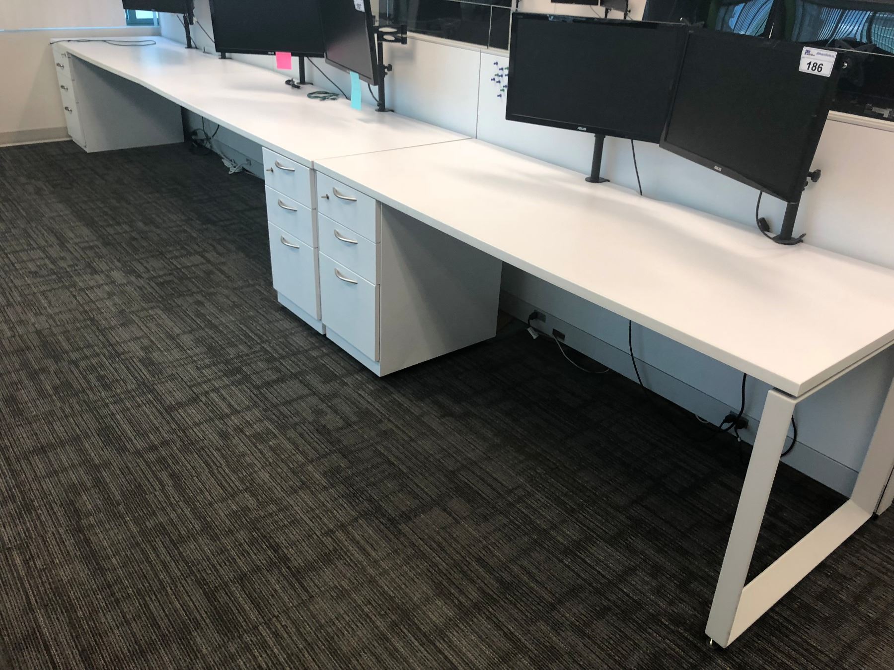STEELCASE TURNSTONE WHITE WITH GLASS PANEL 6 PERSON OFFICE CUBICLE WITH FILE PEDESTALS