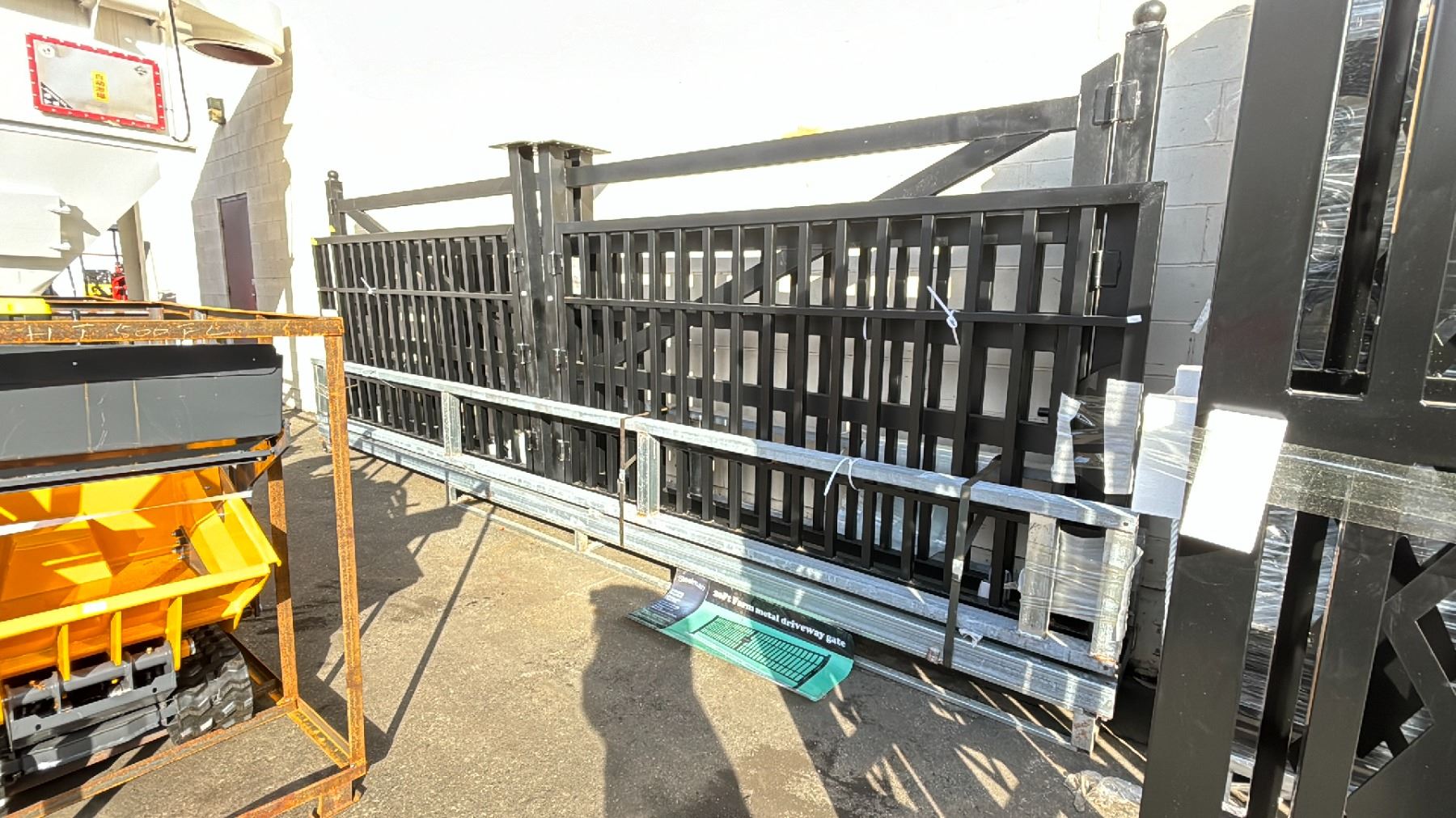 STEELMAN 20' BI-PARTING FARM METAL DRIVEWAY GATE WITH TWO 79"H POSTS, 7' HIGH ON ENDS, POST CAP & BLACK POWDER COAT FINISH ** REQUIRES 2 PEOPLE FOR REMOVAL **