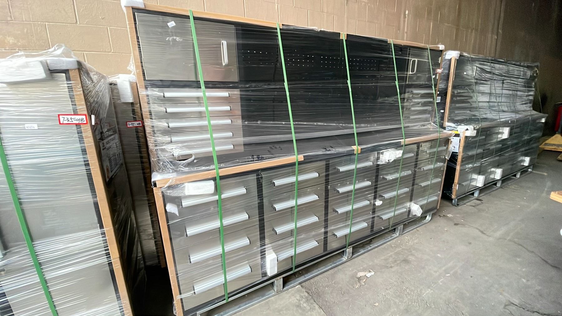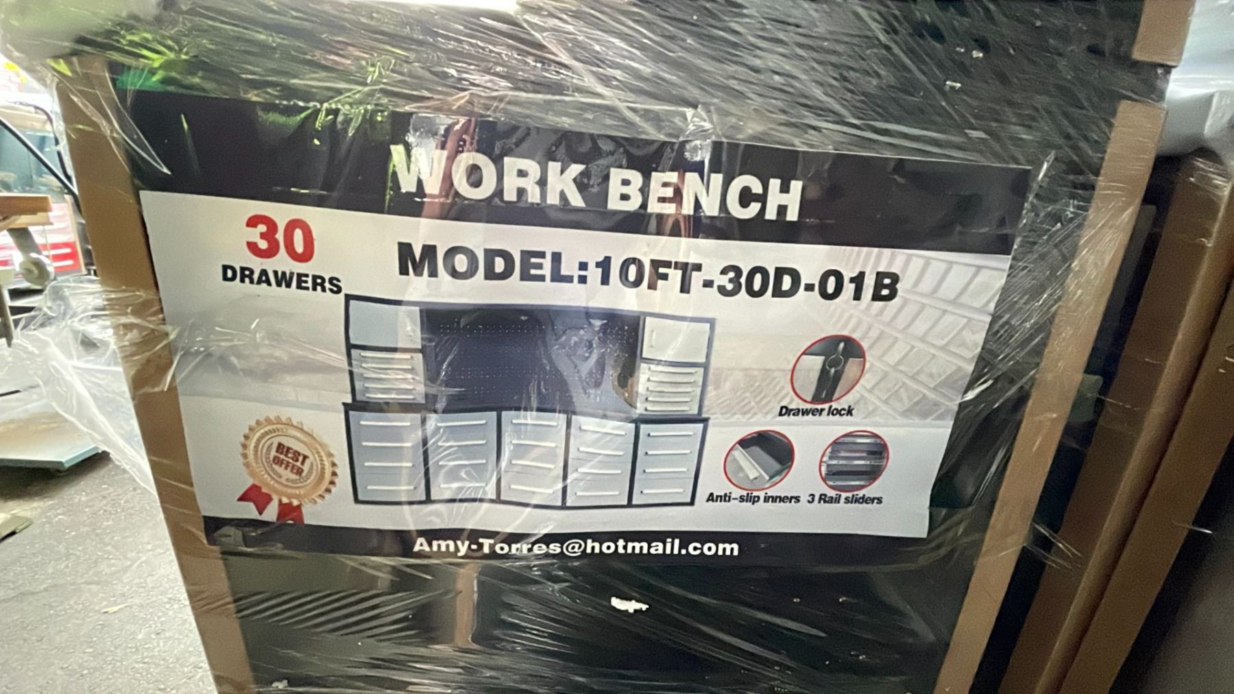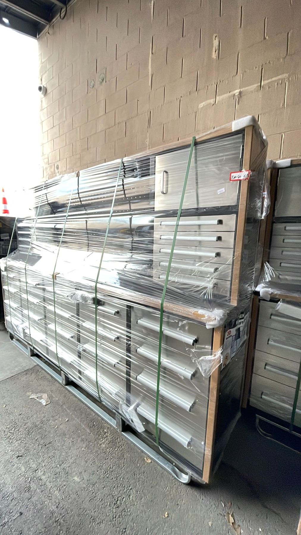 STEELMAN 30 DRAWER/2 UPPER CABINETS STAINLESS STEEL FRONT 10FT WORK BENCH WITH PEG BOARD