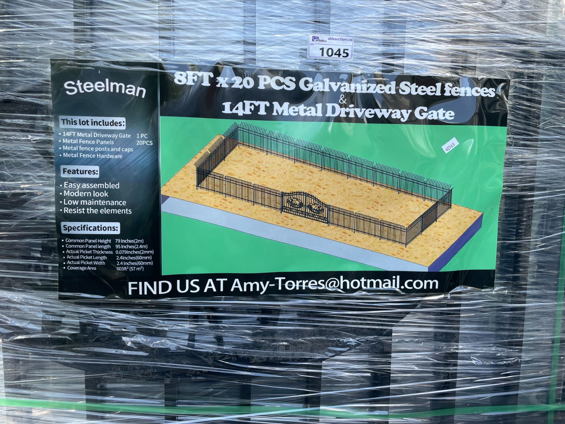STEELMAN BLACK 8' X 20PCS GALVANIZED STEEL FENCING SYSTEM AND 14' BI-PARTING DRIVEWAY GATE WITH