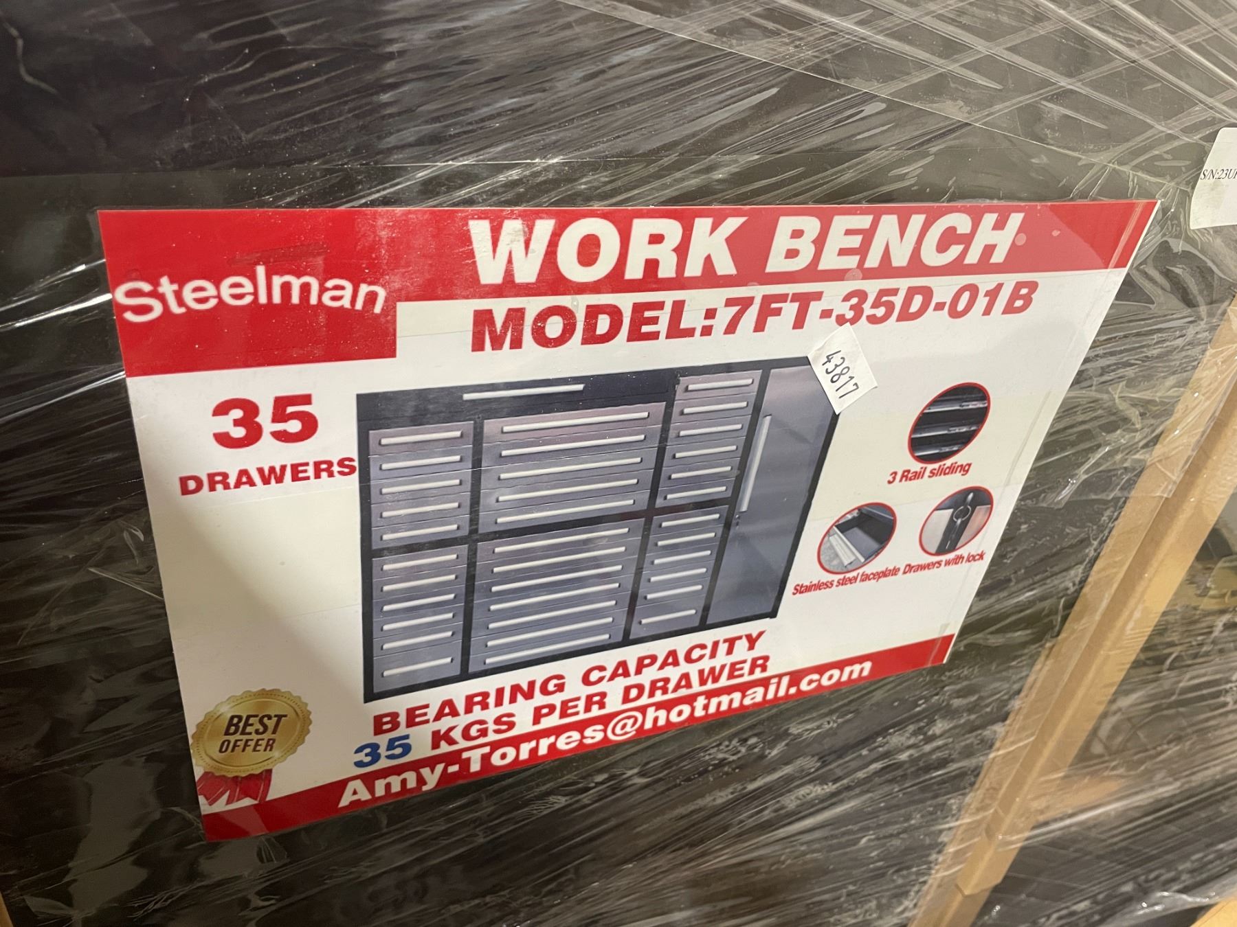 STEELMAN STAINLESS STEEL 35 DRAWER TOOL CHEST 58"H X 85"W X 23"D WITH ANTI-SLIP LINING LOCKING DRAWERS, KEYS, & THREE RAIL SLIDERS WITH 35KG CAPACITY PER DRAWER