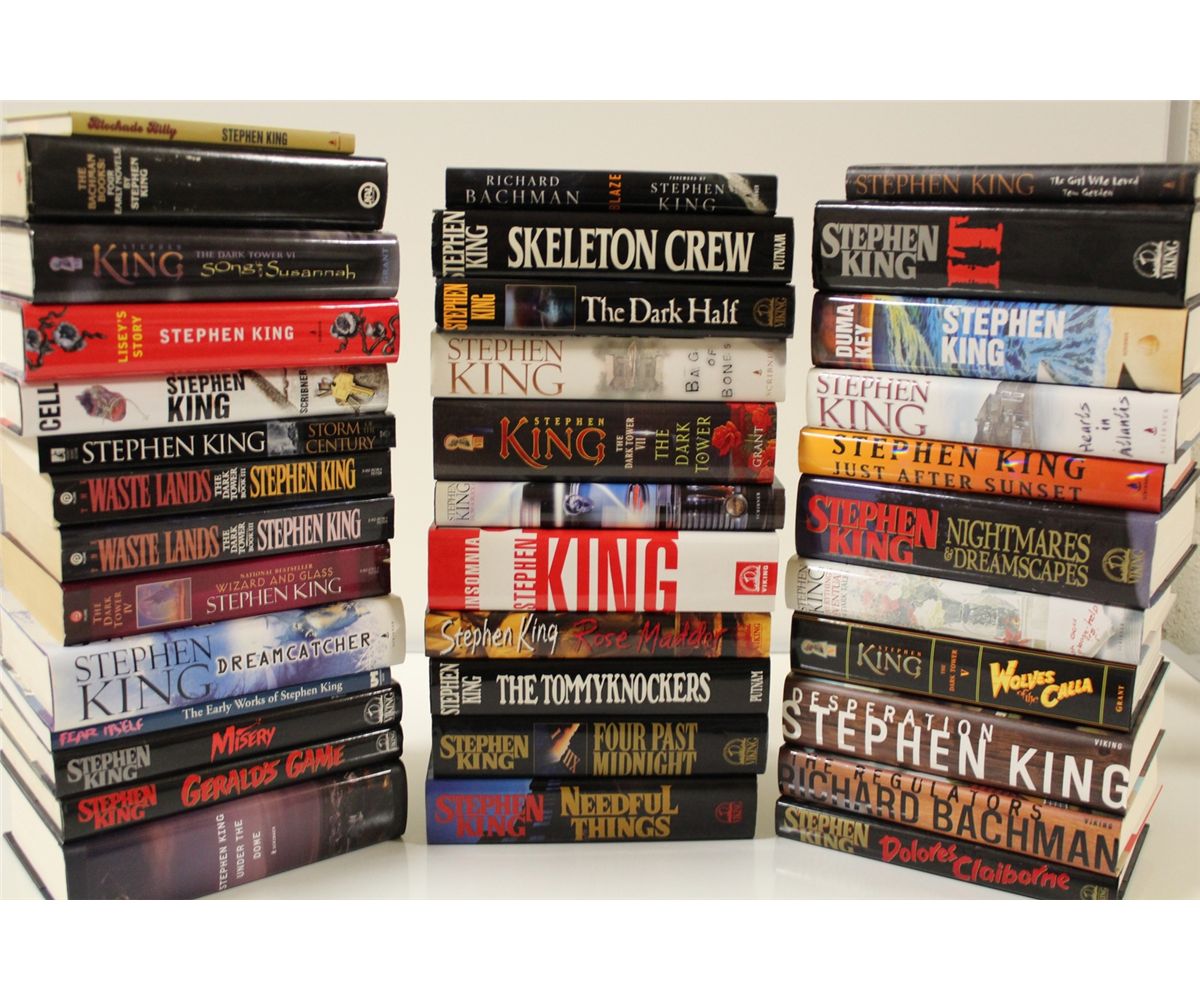 STEPHEN KING 1ST PRINT HARDCOVER COLLECTION (1985-2011) AMAZING STEPHEN KING 27 YEAR LONG HARDCOVER RUN OF 35 1ST PRINT BOOKS, NO DUPLICATES! INCLUDES IT, MISERY, SKELETON CREW, THE DARK TOWER SERIES & MUCH, MUCH MORE! EXCELLENT OVERALL CONDITION, ALMOST ALL LIKE NEW, A MUST HAVE FOR THE STEPHEN KING READER/ COLLECTOR!