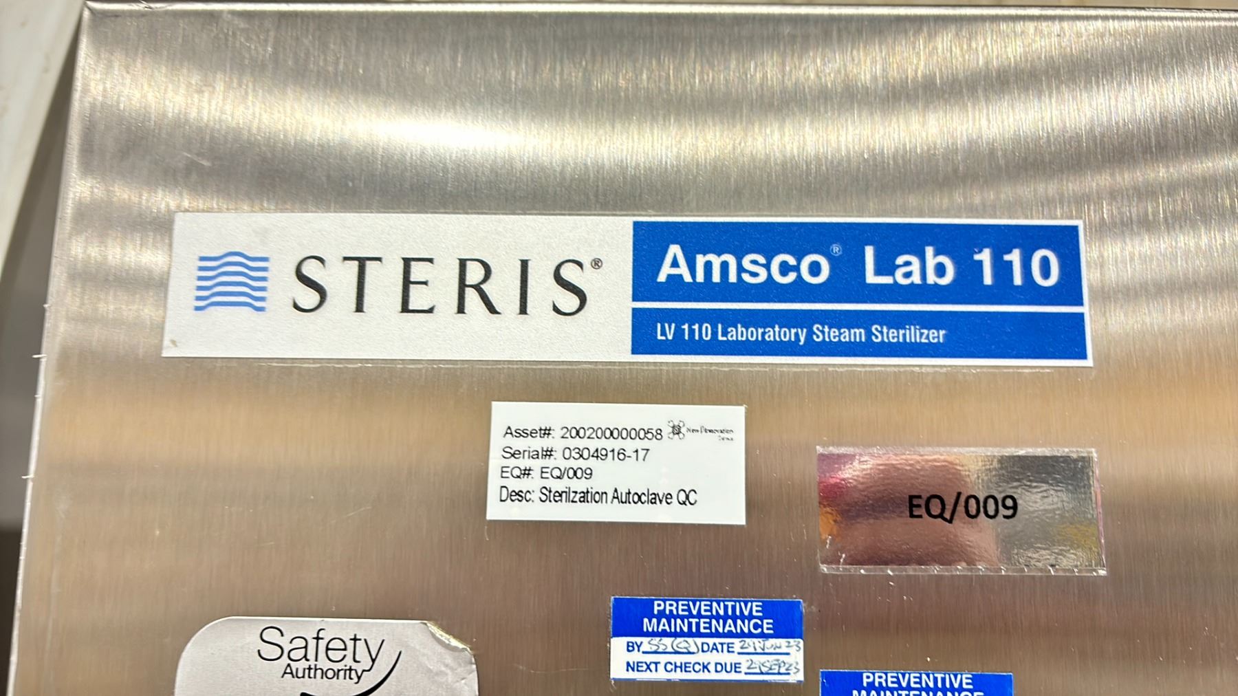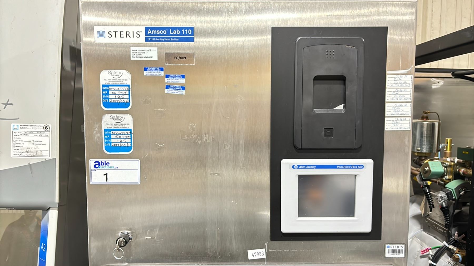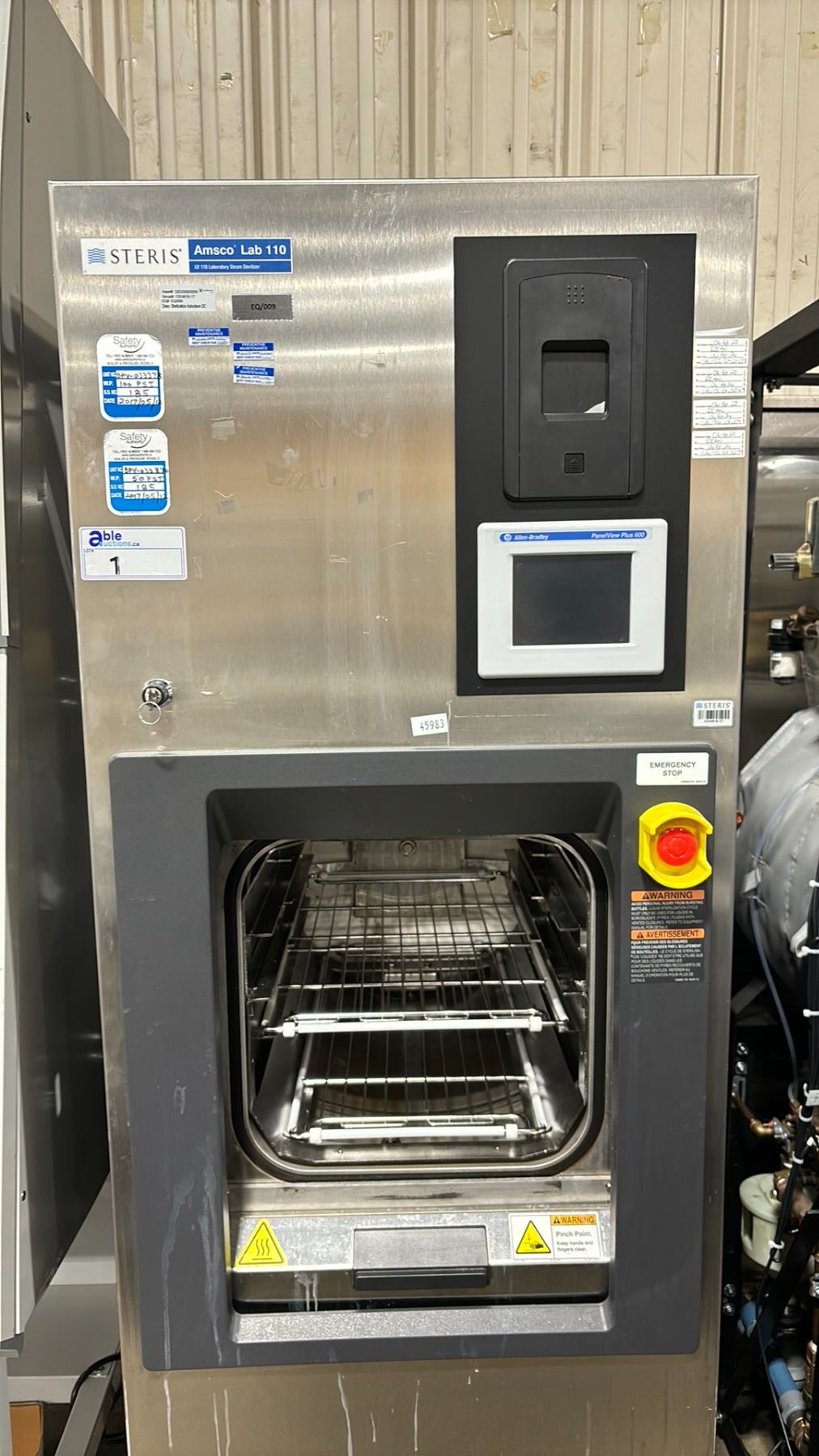 STERIS AMSCO LAB 110 STAINLESS STEEL LV 110 COMMERCIAL LABORATORY STEAM STERILIZATION AUTOCLAVE QC STERILIZATION SYSTEM WITH ALLEN-BRADLEY PANEL VIEW PLUS 600 DIGITAL TOUCH SCREEN & SIDE PANELS *HAS KEYS*