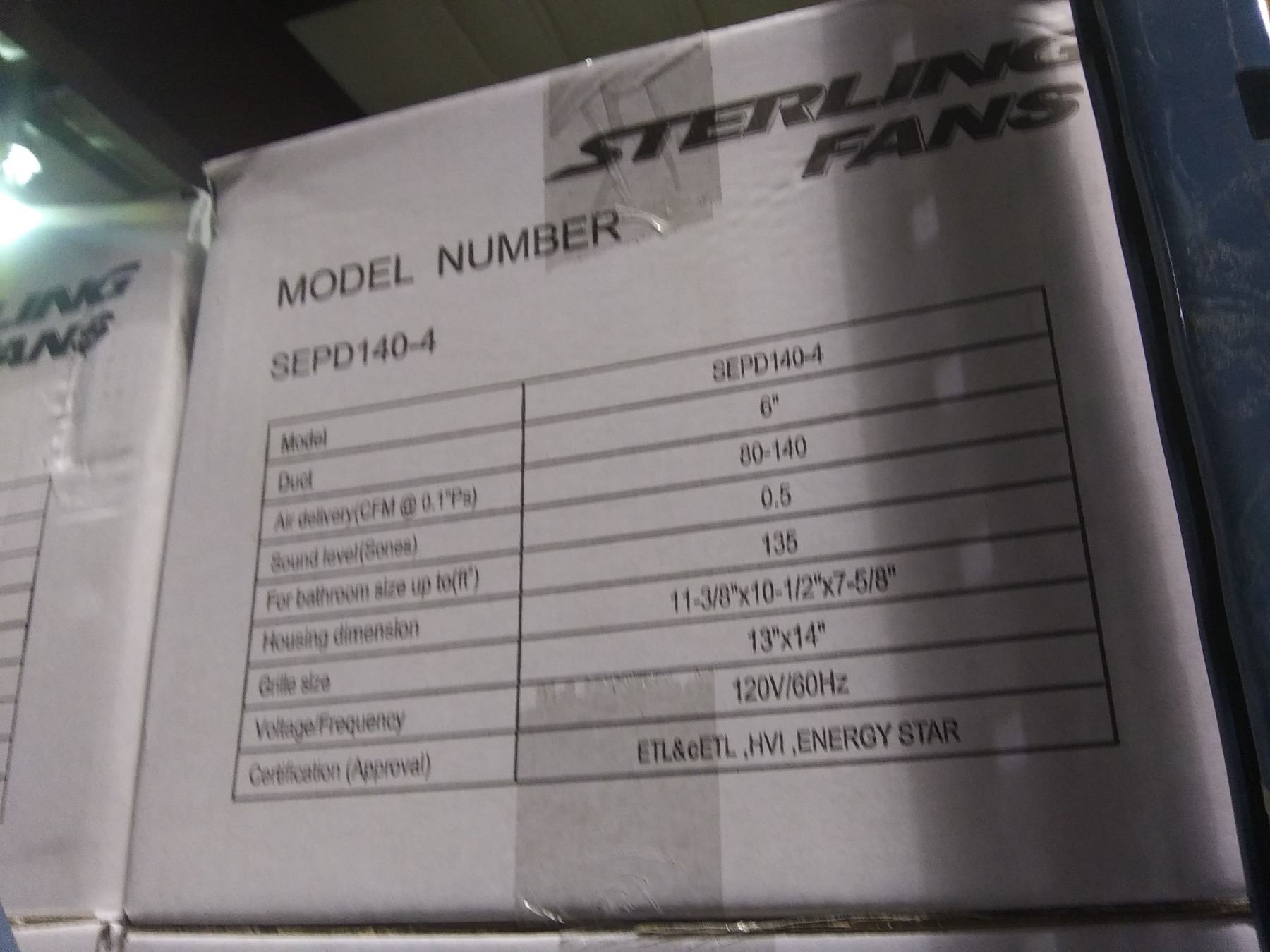 STERLING FANS SEPD140-4 ULTRA SILENT HIGH PERFORMANCE HVAC CEILING EXHAUST FAN