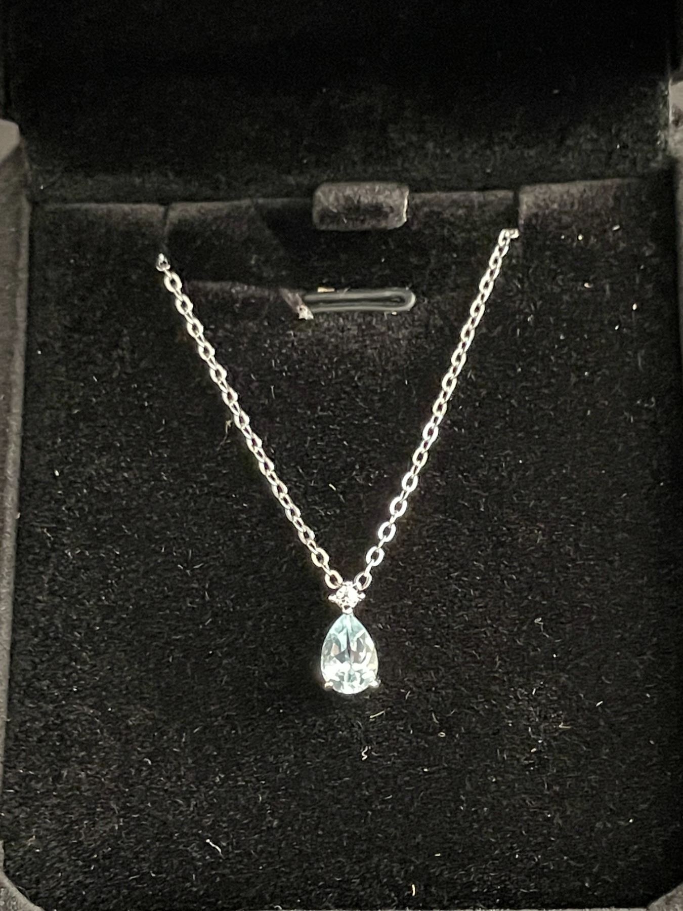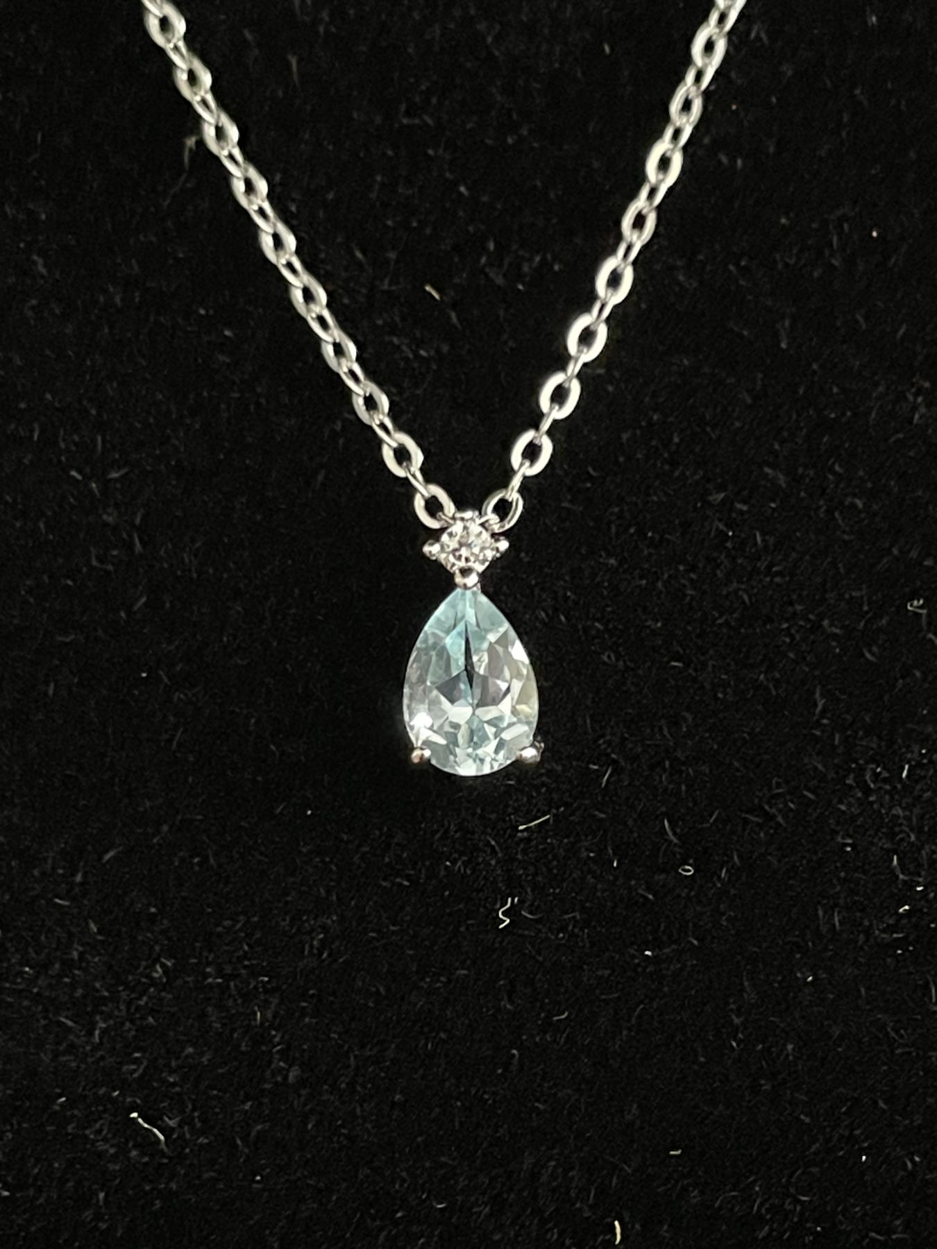 STERLING SILVER 1.0CT PEAR CUT SWISS BLUE TOPAZ NECKLACE, ADJUSTABLE CHAIN 16" TO 17" - MOUNTED IN 925 STERLING SILVER WITH WHITE GOLD OVERLAY