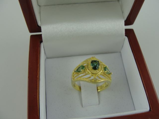 STERLING SILVER AND GOLD FINISHED GREEN QUARTZ RING SET WITH 2 DIAMONDS