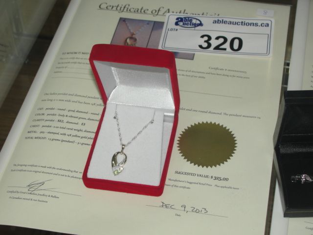 STERLING SILVER AND GOLD PERIDOT AND DIAMOND NECKLACE INCLUDES $325 CERTIFICATE