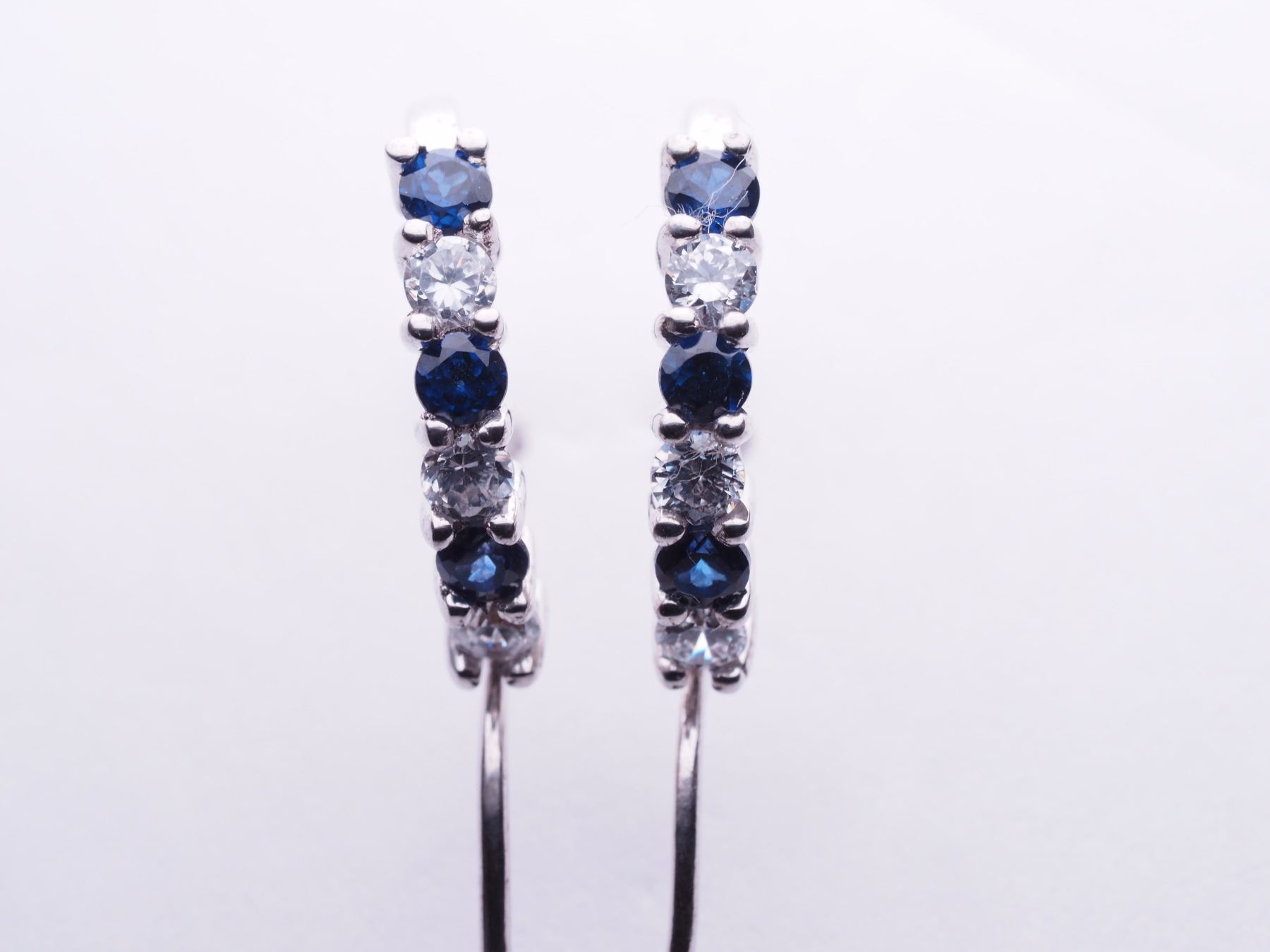 STERLING SILVER CREATED SAPPHIRE HOOP EARRINGS, RETAIL $150