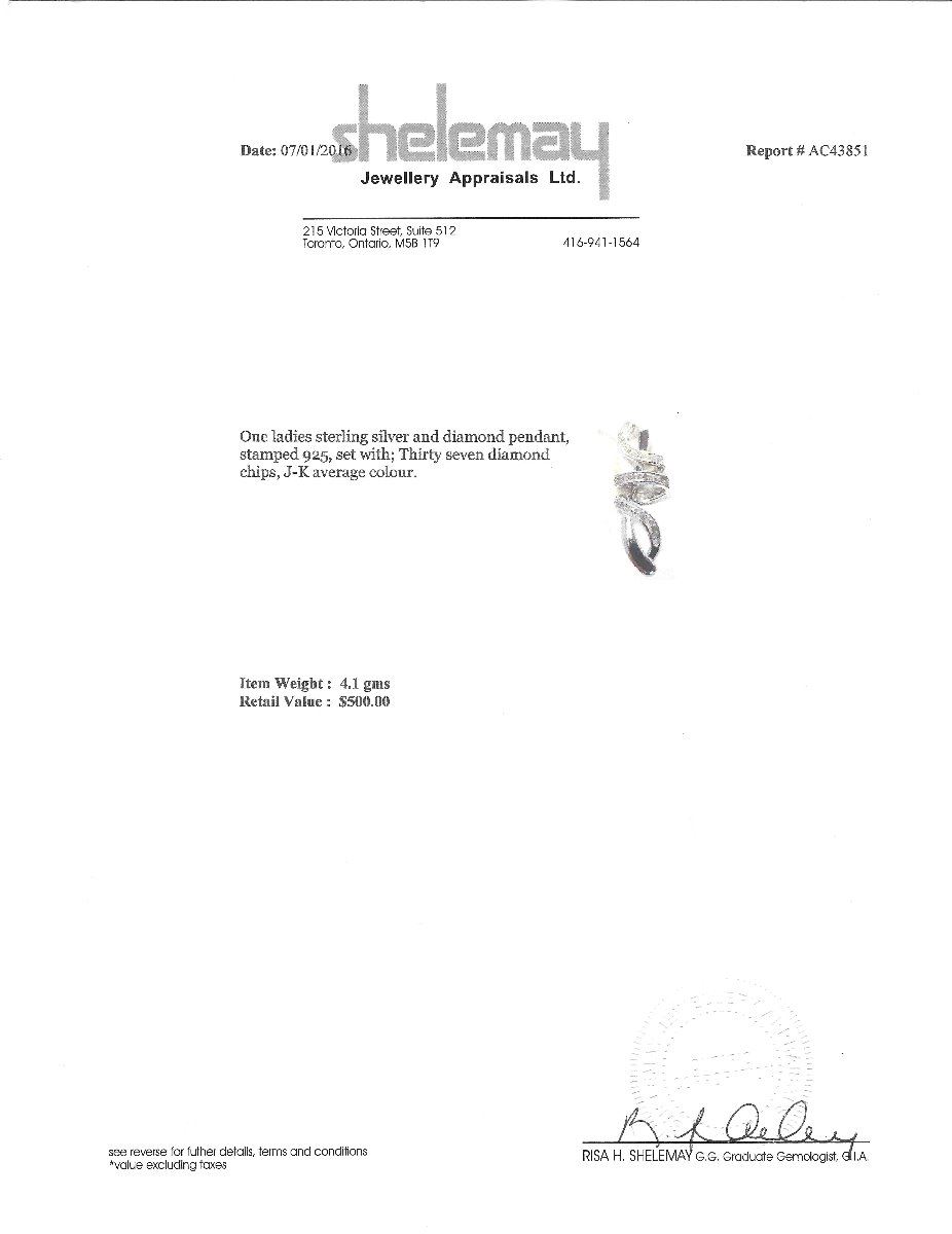 STERLING SILVER DIAMOND PENDANT. REPLACEMENT VALUE: $500.00