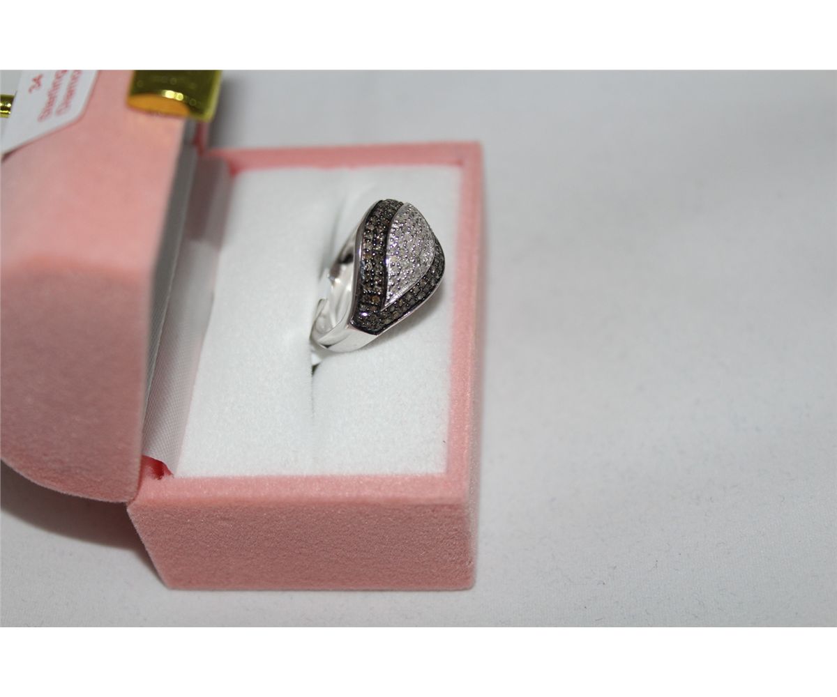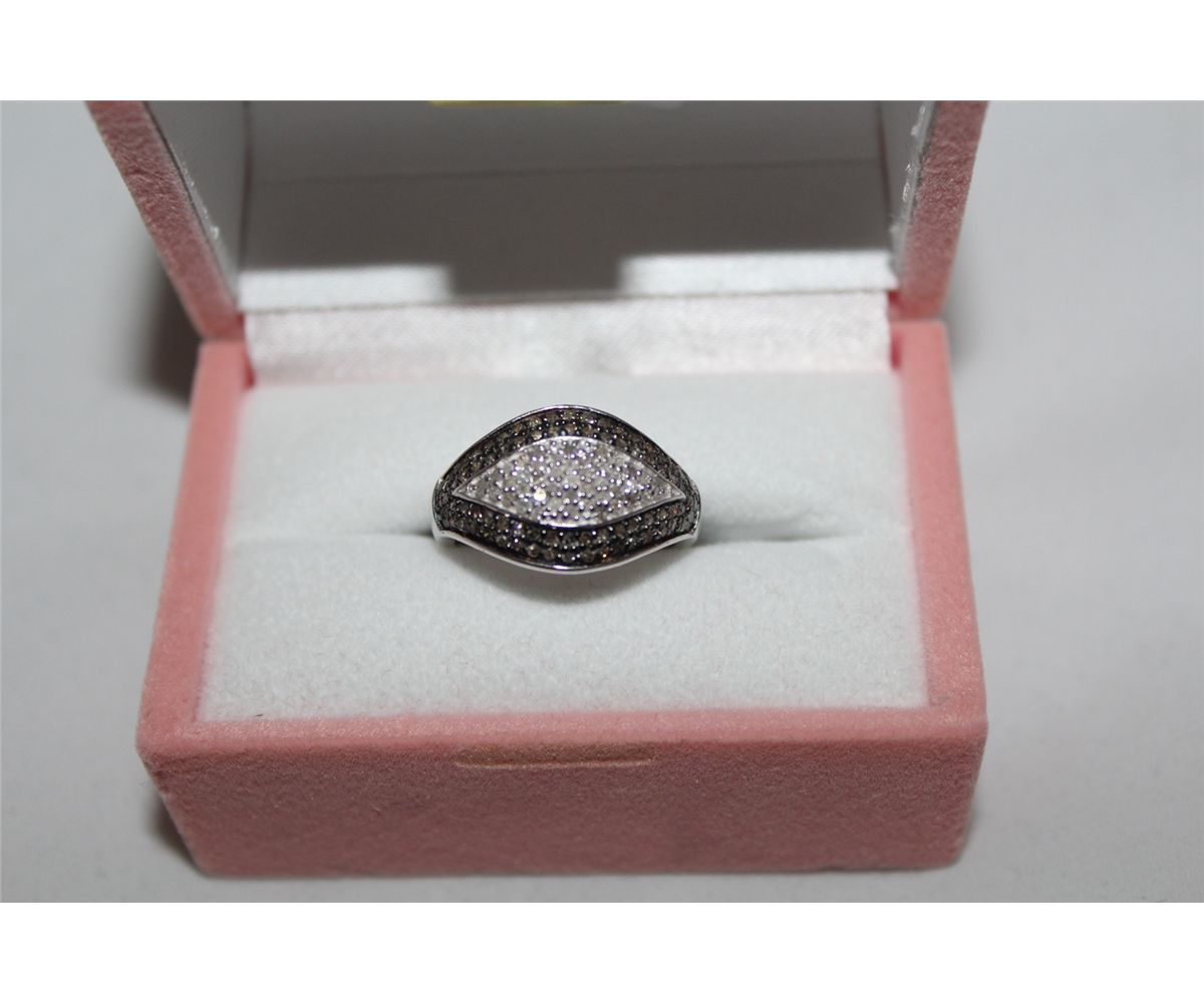 STERLING SILVER DIAMOND RING. NATURAL DIAMOND 0.83 CARAT, BLACK COLOUR, 4.21 GRAMS. INCL. GEMOLOGIST APPRAISAL