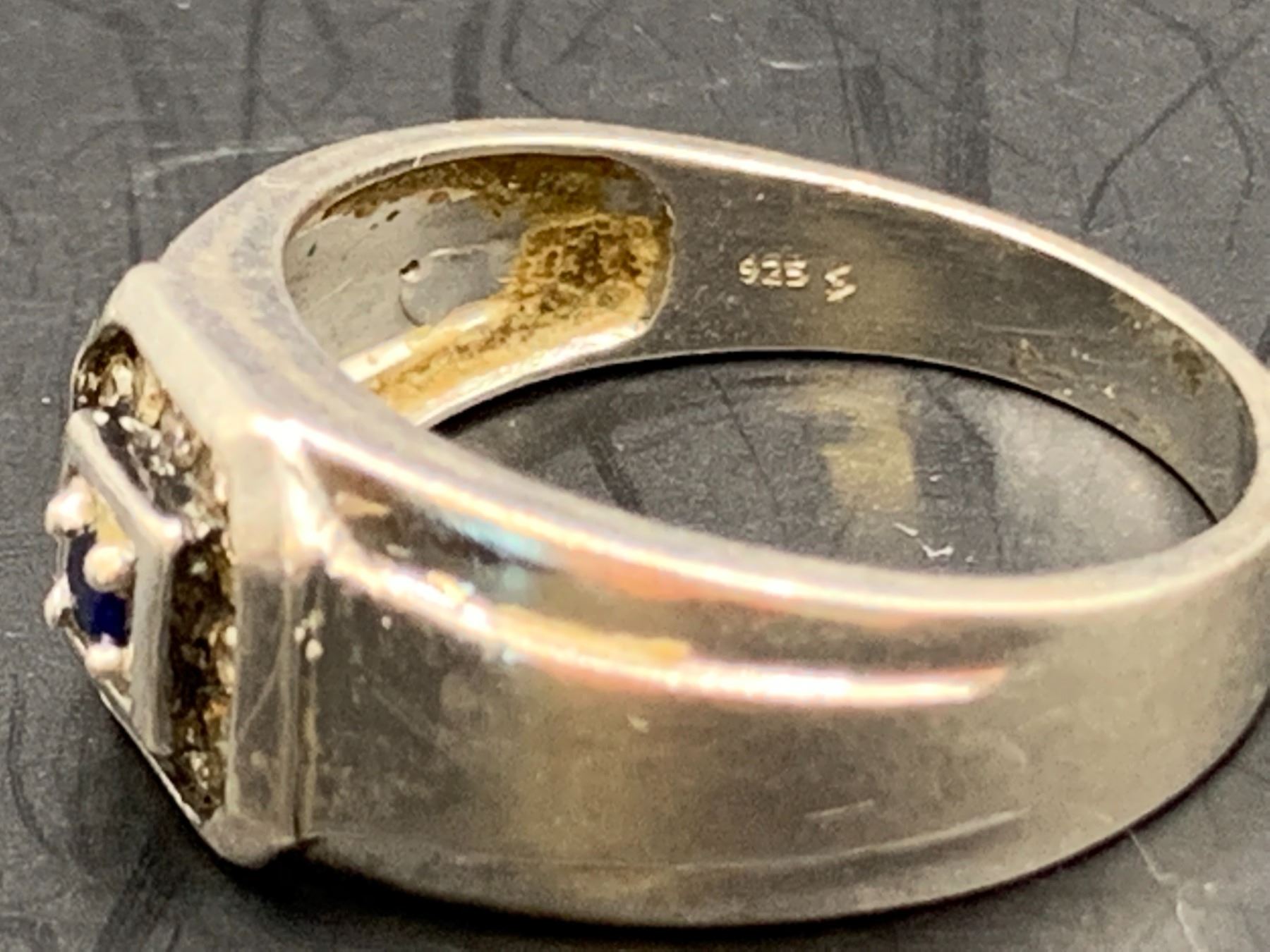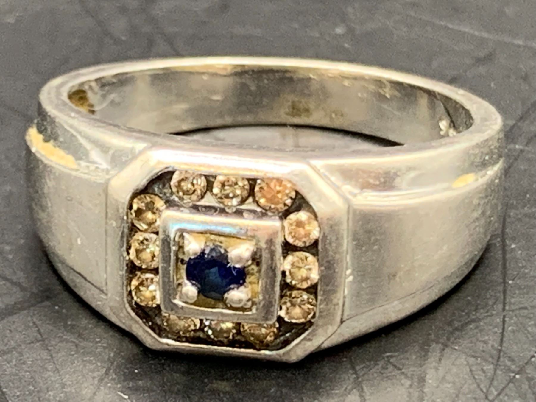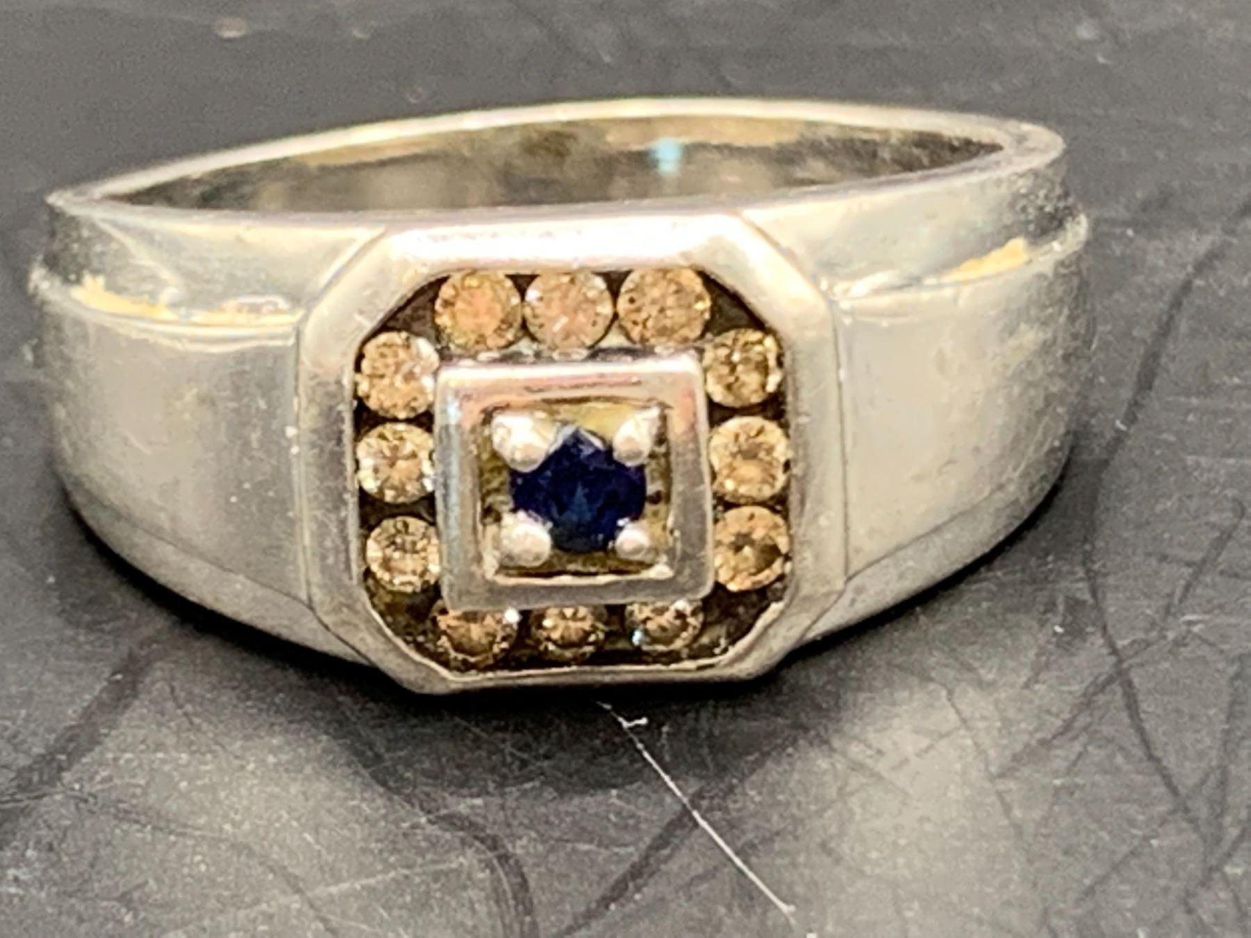 STERLING SILVER DIAMOND SYNTHETIC BLUE SAPPHIRE GENTS DRESS RING 10.45MM APPROX. 0.25CT DIAMETER