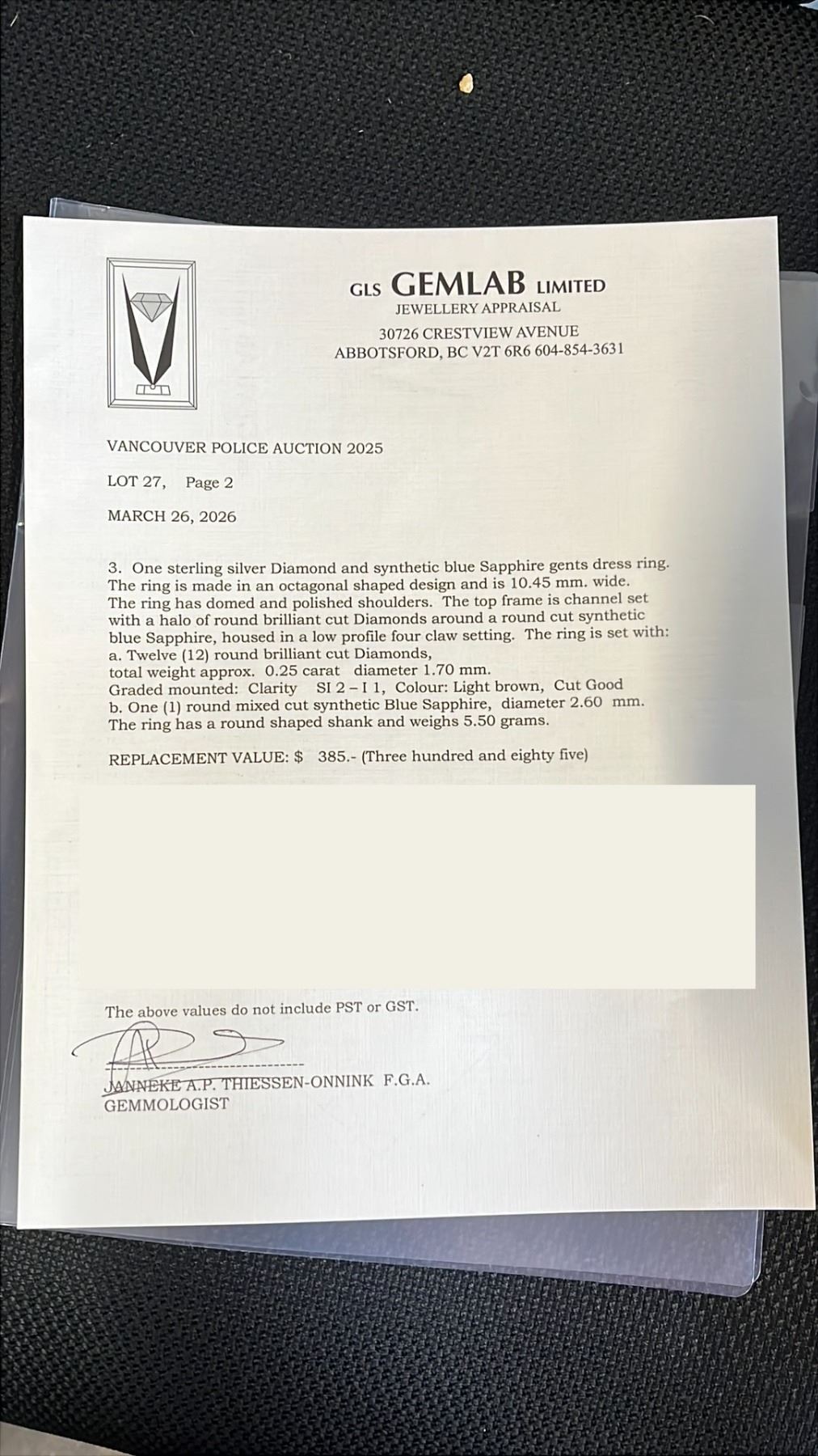 All purchased lots must be paid for on day of sale by direct deposit, ETRANSFER or by credit card. If you would prefer to use your credit card on file, please call us at 604.859.1661 and let us know to charge the credit card on file. online only for purchases under $999. Internet bidders’ payment is due in full by the end of the Auction by 4:00pm on Auction day.