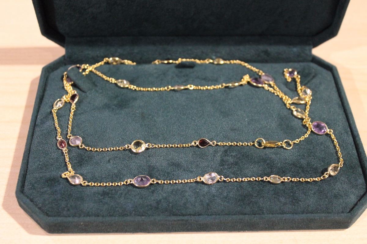 STERLING SILVER GARNET, AMETHYST, PERIDOT, AQUAMARINE NECKLACE