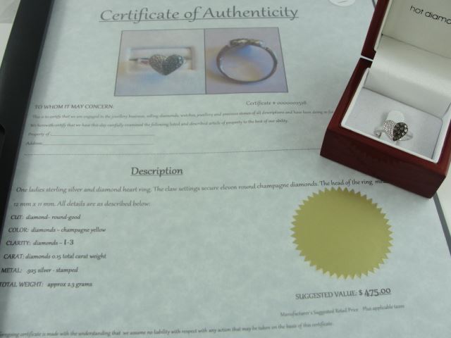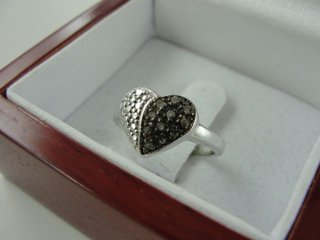 STERLING SILVER HEART RING SET WITH 11 CHAMPAGNE DIAMONDS. INCLUDES $475 CERTIFICATE
