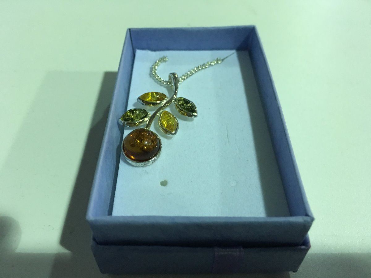 STERLING SILVER MULTI COLORED AMBER NECKLACE - YELLOW, GREEN & ORANGE