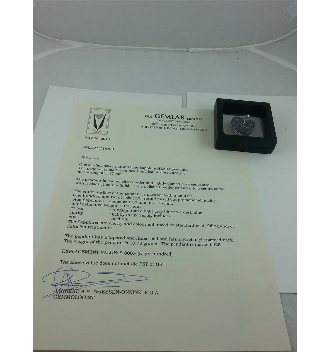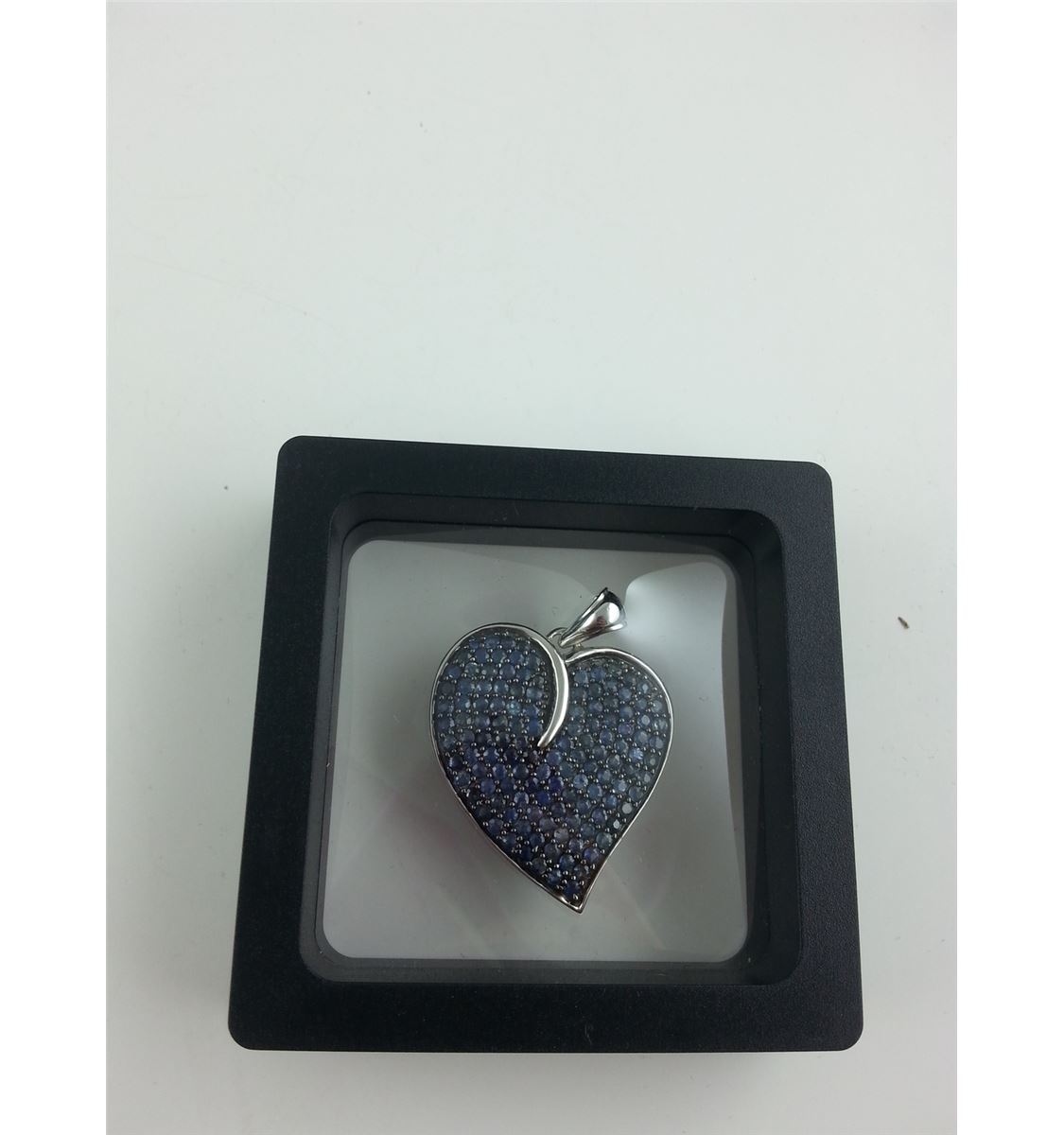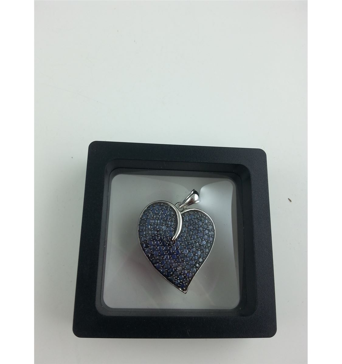 STERLING SILVER NATURAL BLUE SAPPHIRE HEART PENDANT WITH 126 BLUE SAPPHIRES, APPROX 4..00CARATS REPLACEMENT VALUE $800